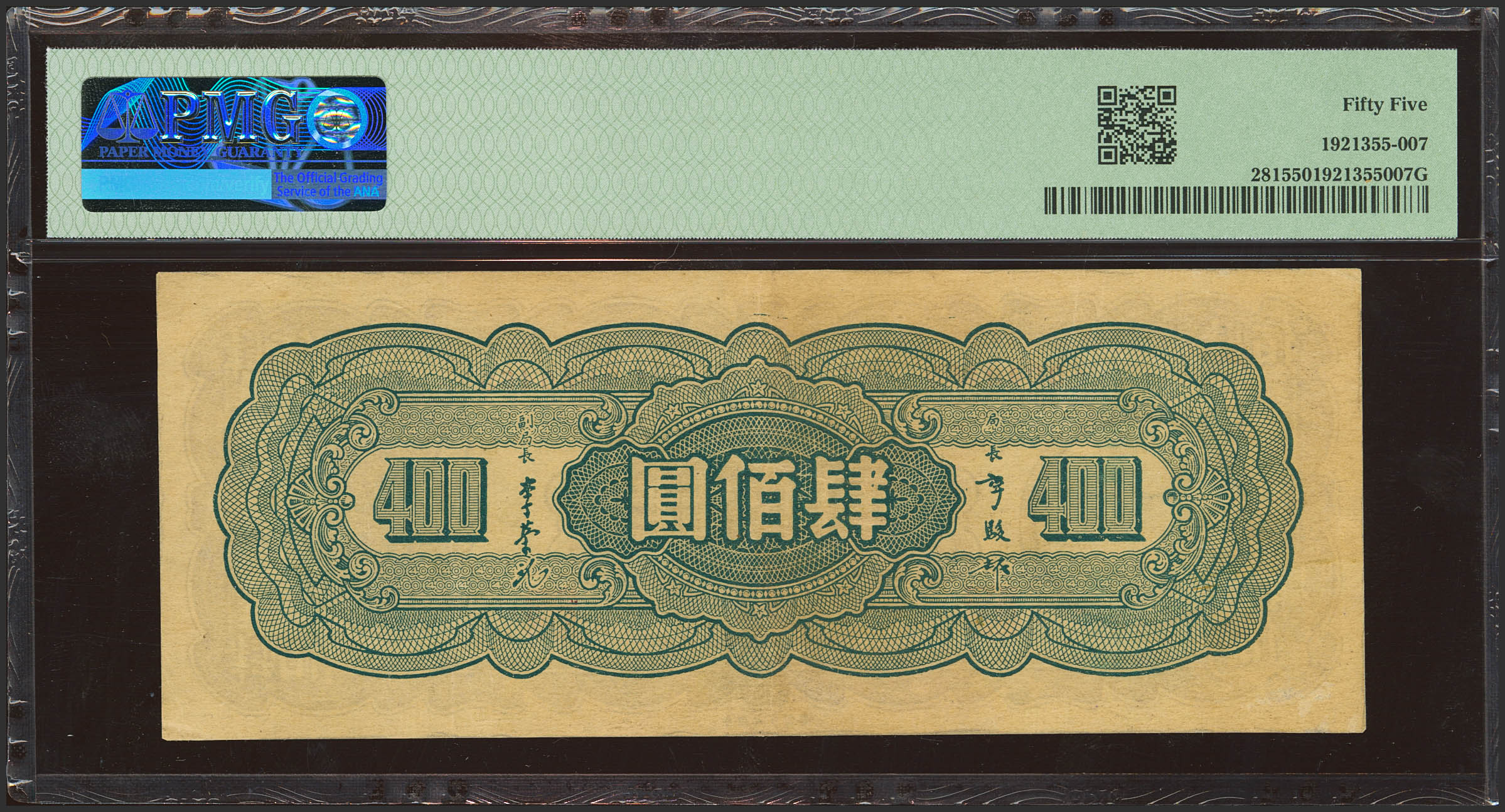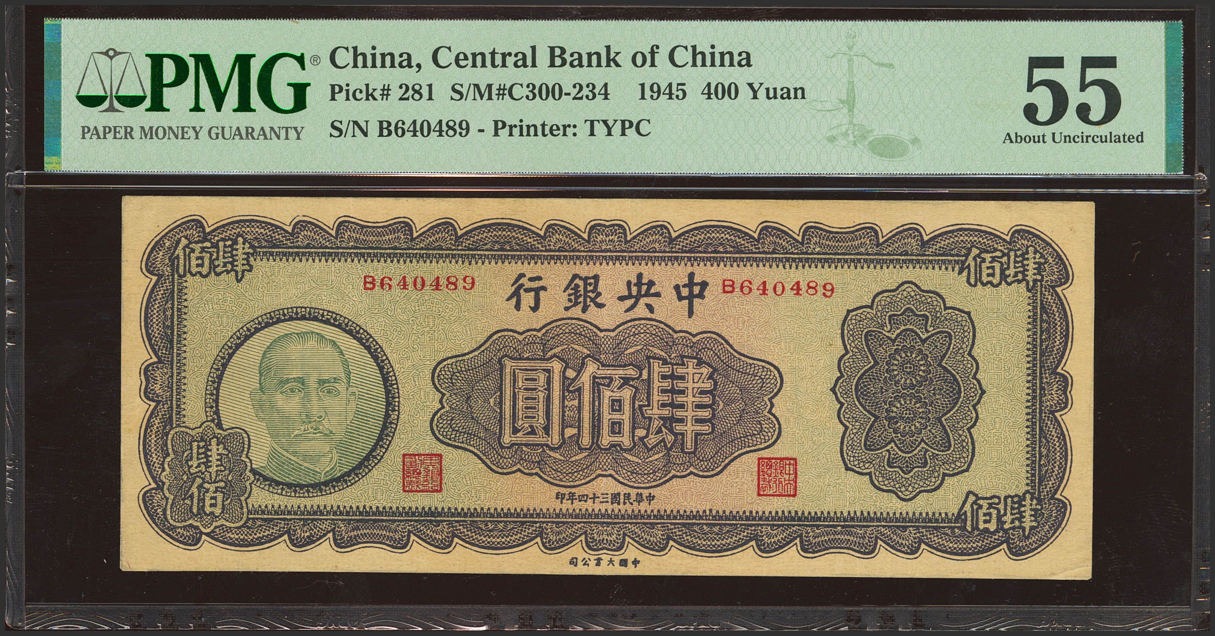 CHINA. 400 Yuan. 1945. Central Bank of China. (Pick: 281, SM: C300-234). PMG55.