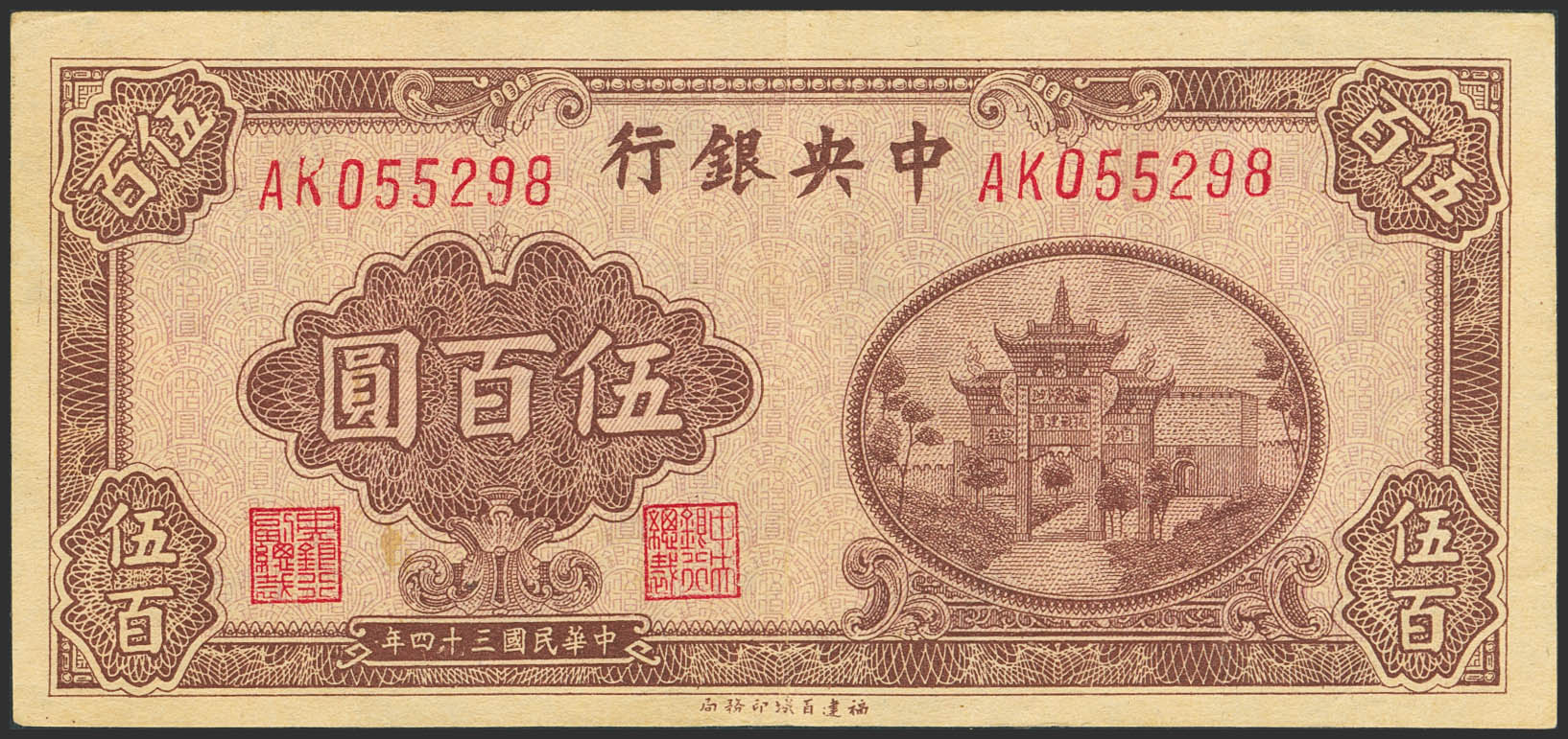 CHINA. 500 Yuan. 1945. Central Bank of China. (Pick: 285). Extremely Fine.