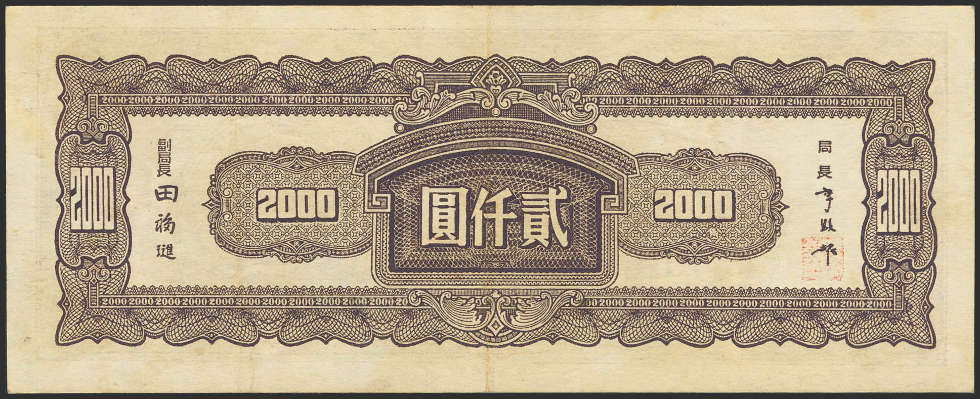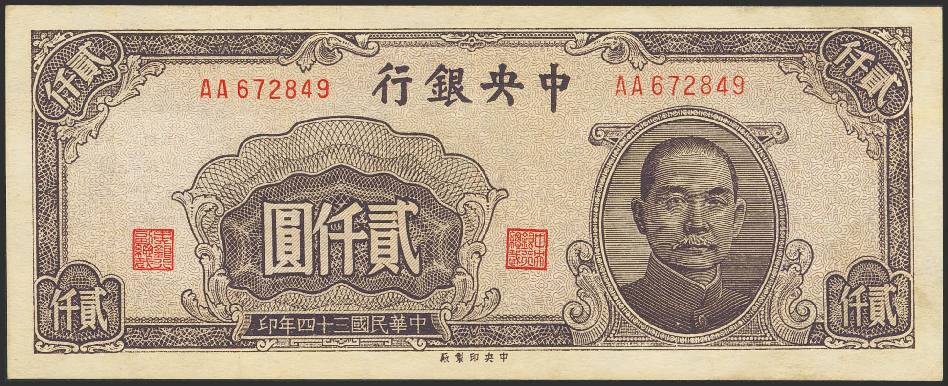 CHINA. 2000 Yuan. 1945. Central Bank of China. (Pick: 300). More than Extremely Fine.