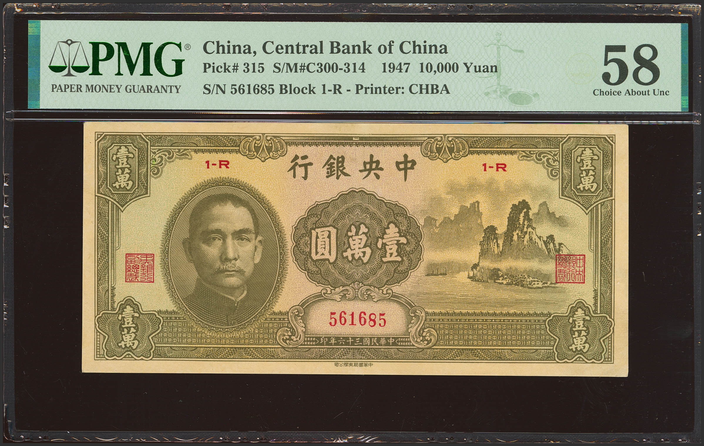 CHINA. 10000 Yuan. 1947. Central Bank of China. (Pick: 315, SM: C300-314). PMG58.