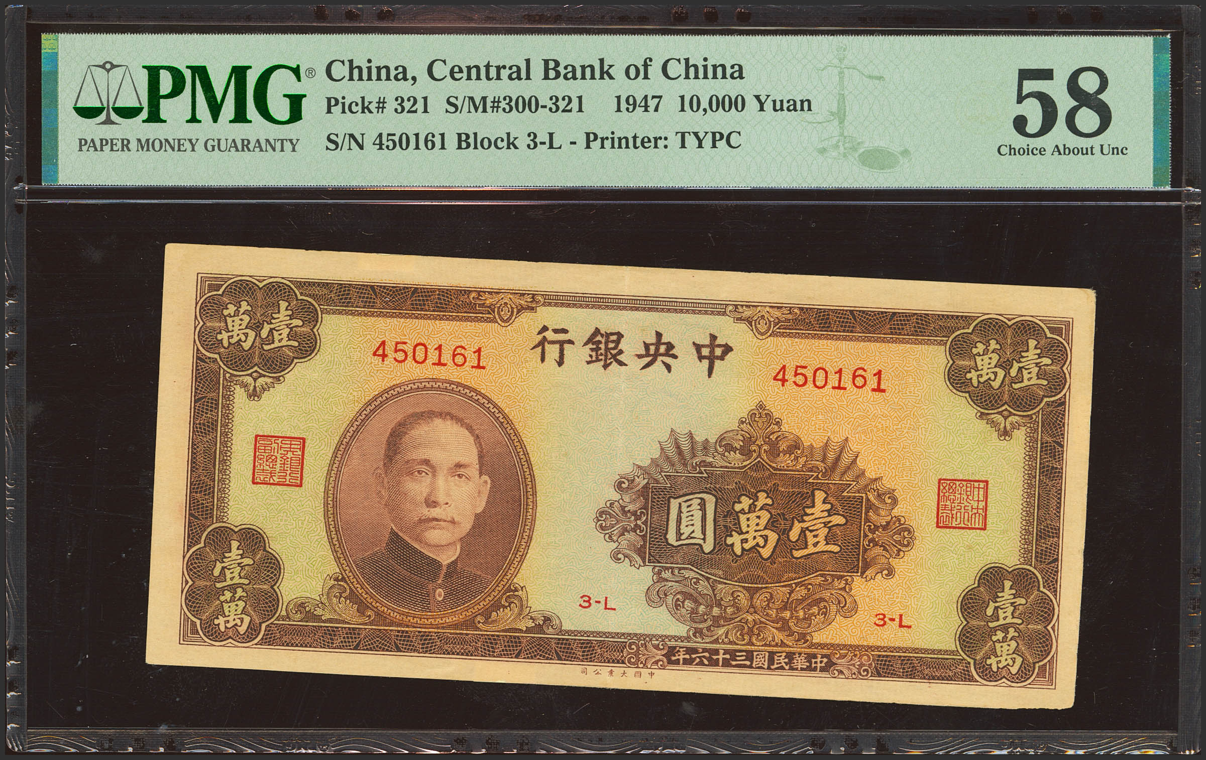 CHINA. 10000 Yuan. 1947. Central Bank of China. (Pick: 321, SM: C300-321). PMG58 (tape).