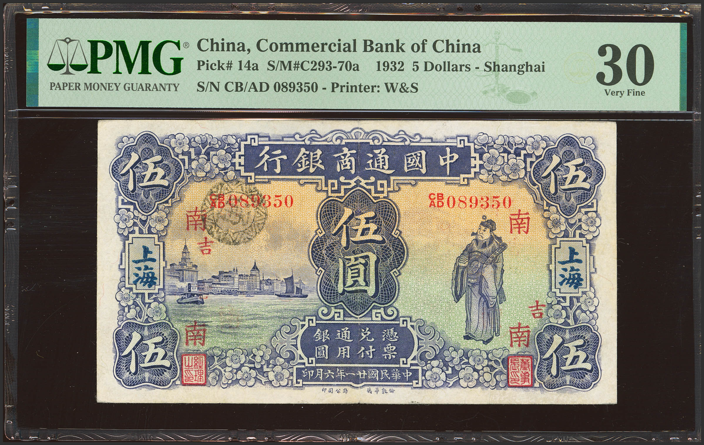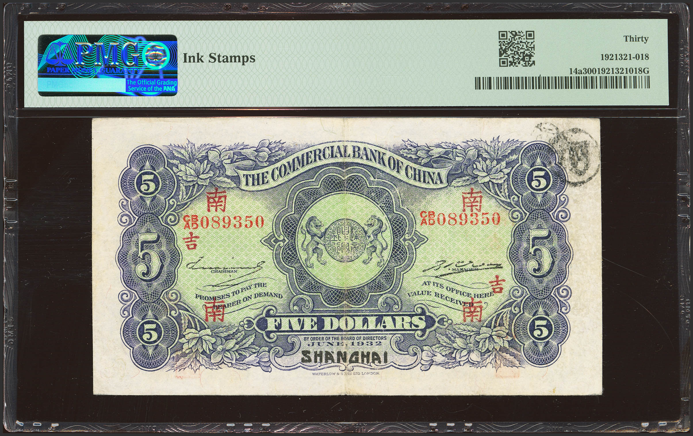 CHINA. 5 Dollars. June 1932. Commercial Bank of China. (Pick: 14aSM: C293-70a). PMG30 (ink stamps).