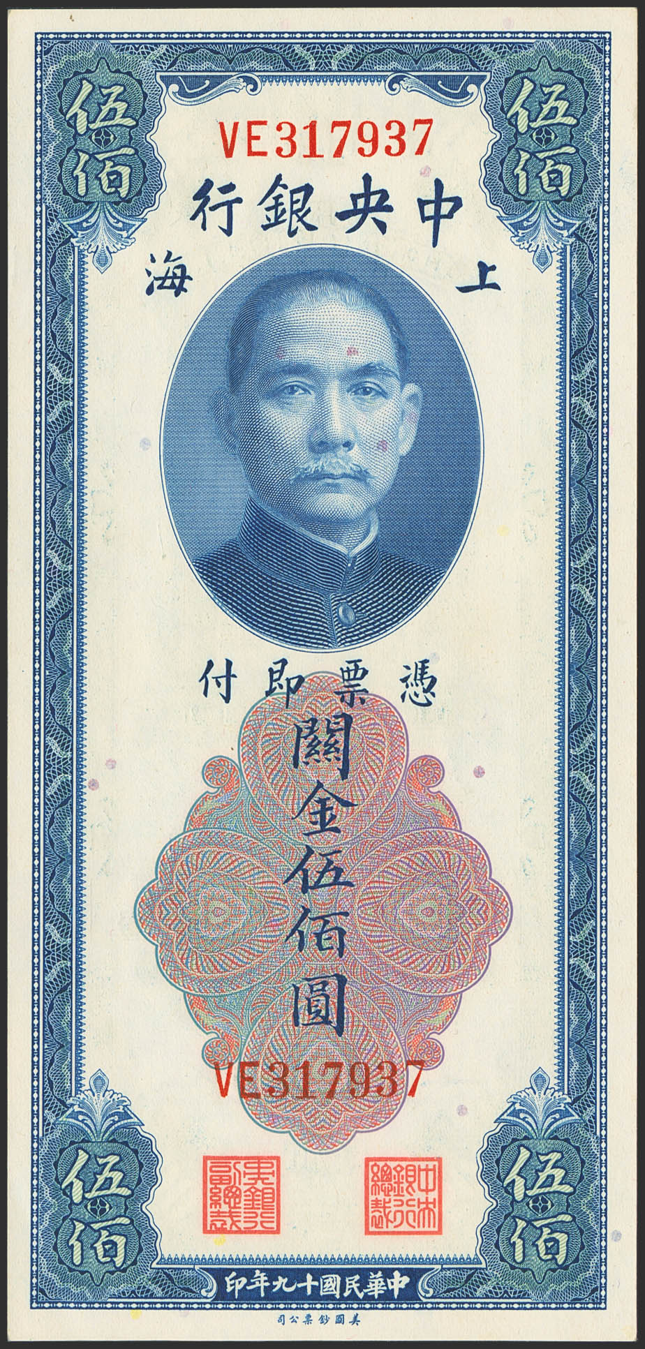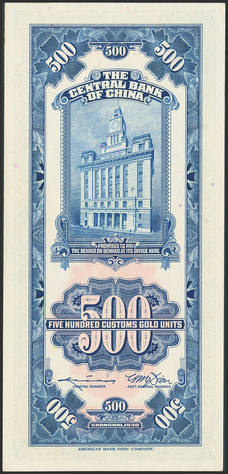 CHINA. 500 Custom gold units. 1930. Central Bank of China. (Pick: 332). Less than Uncirculated.