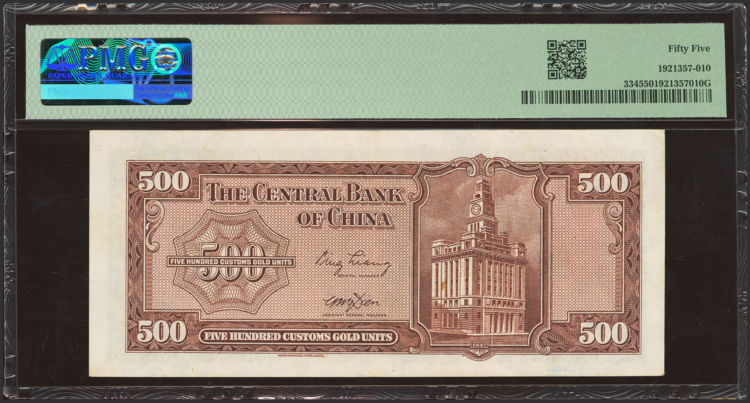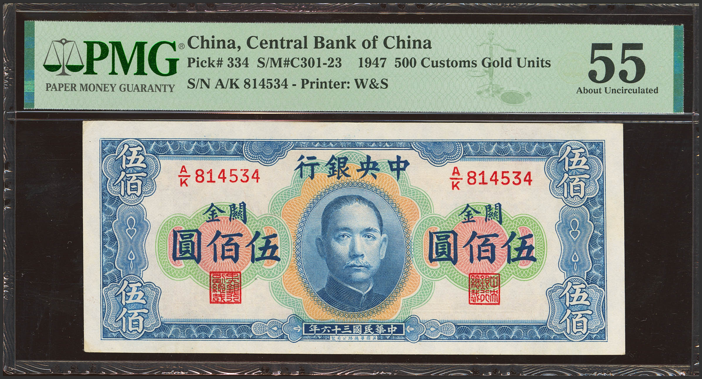 CHINA. 500 Custom gold units. 1947. Central Bank of China. (Pick: 334, SM: C301-23). PMG55.