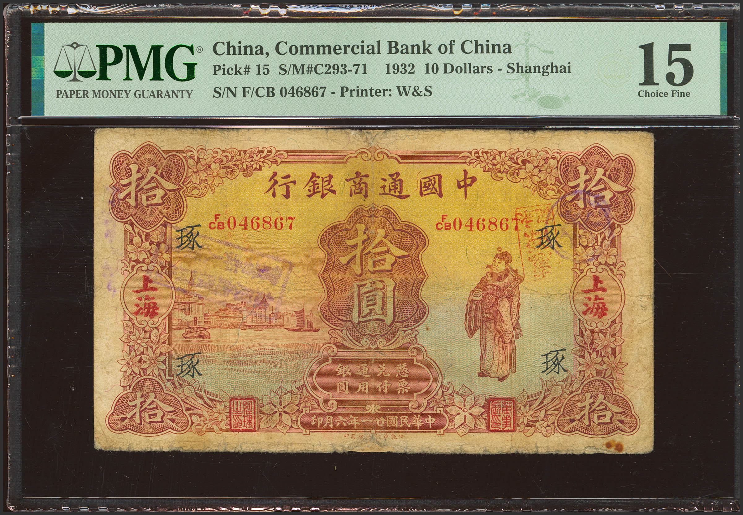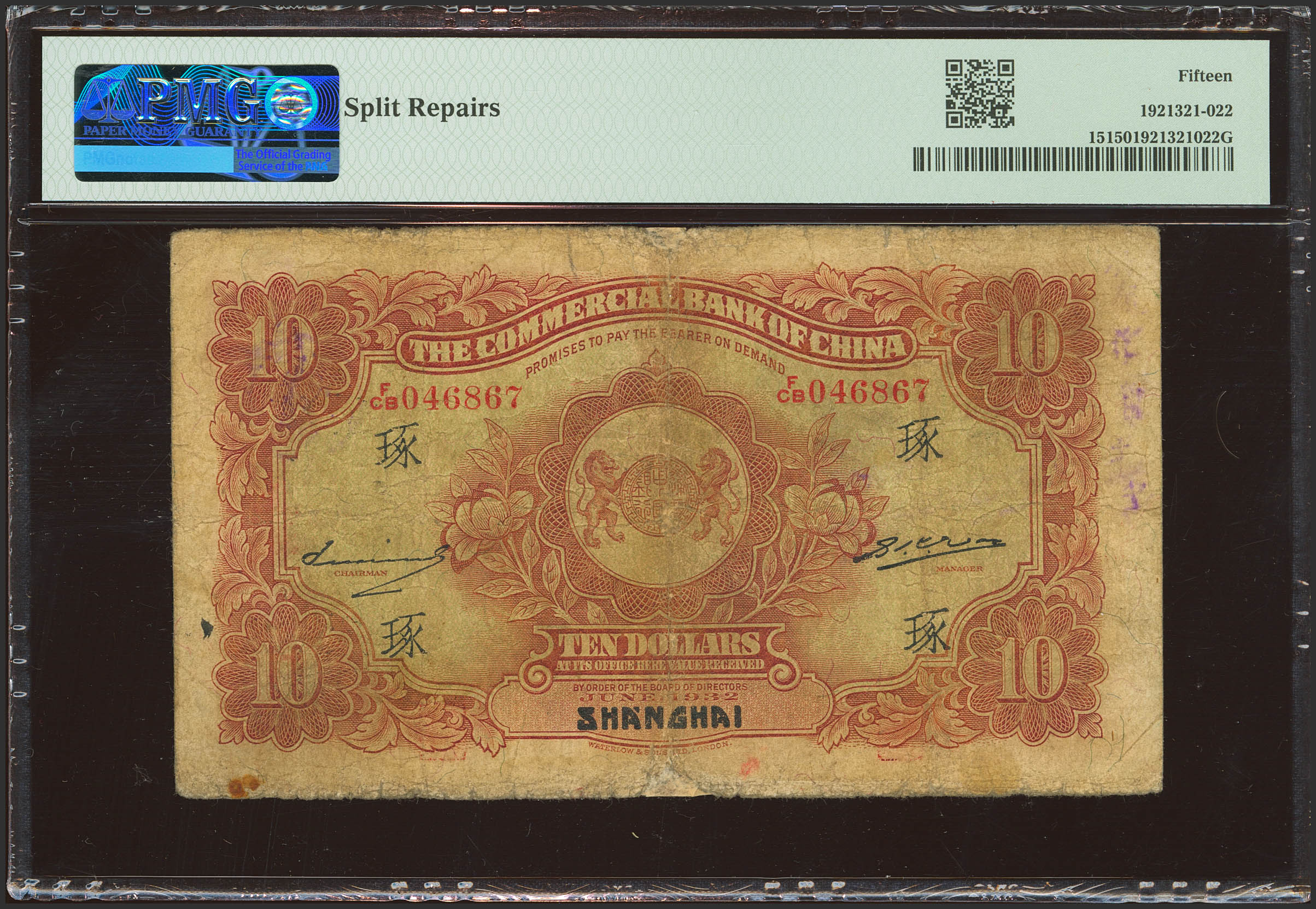 CHINA. 10 Dollars. June 1932. Commercial Bank of China. (Pick: 15, SM: C297-71). PMG15 (split repairs).