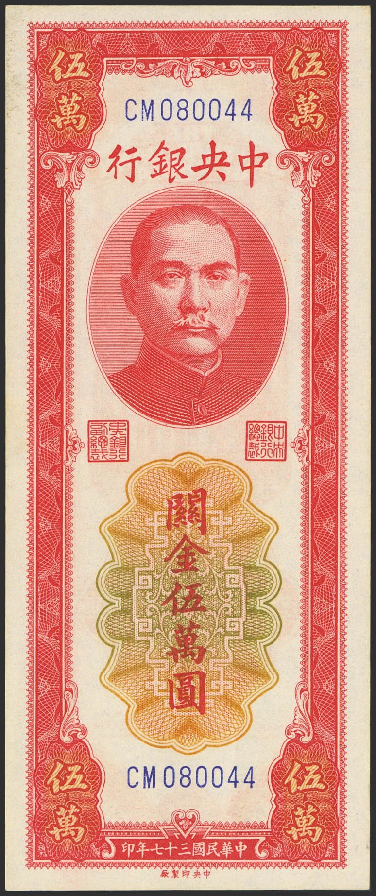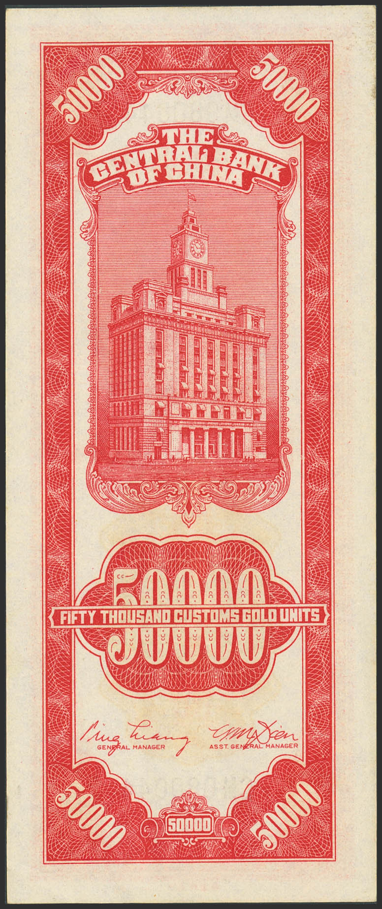 CHINA. 50000 Custom gold units. 1948. Central Bank of China. (Pick: 370). More than Extremely Fine.