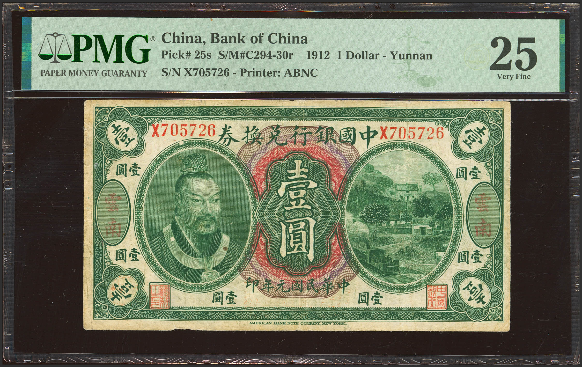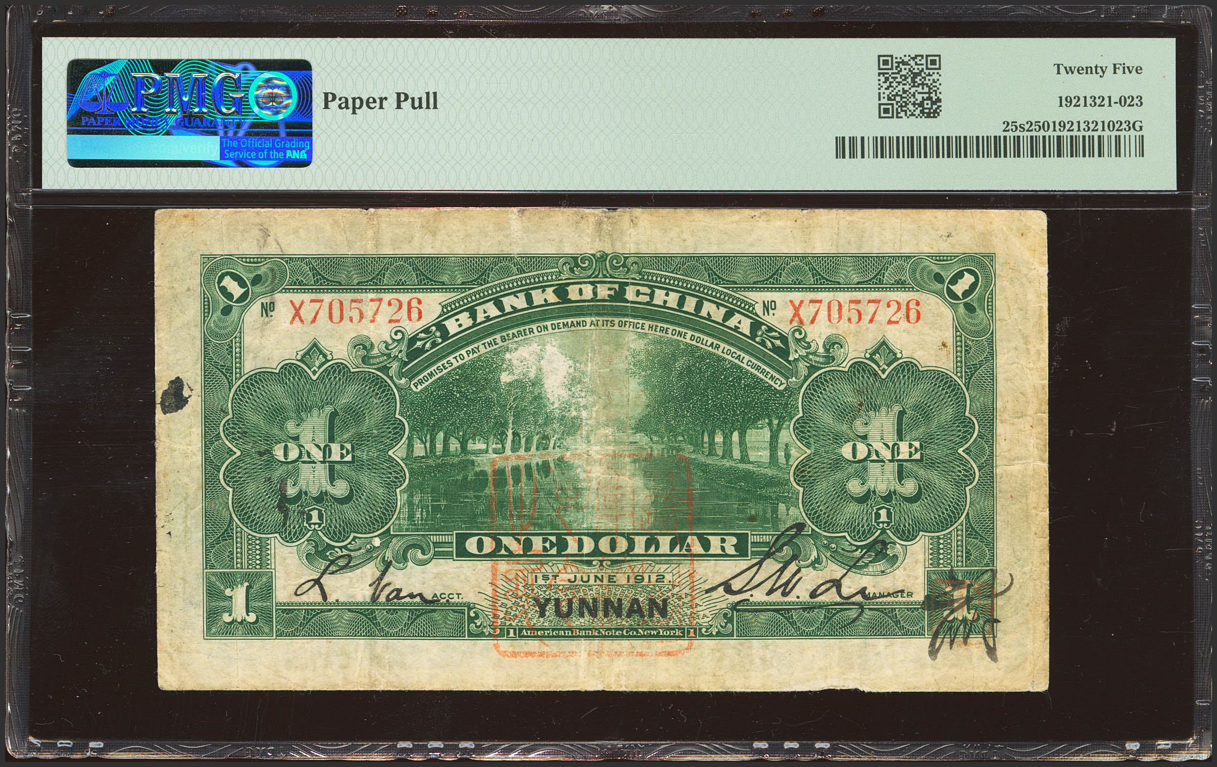 CHINA. 1 Dollar. 1 June 1912. Bank of China. Yunnan. (Pick: 25s, SM: C294-30r). PMG25 (paper pull).