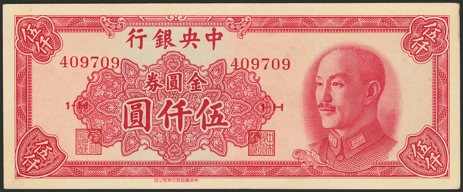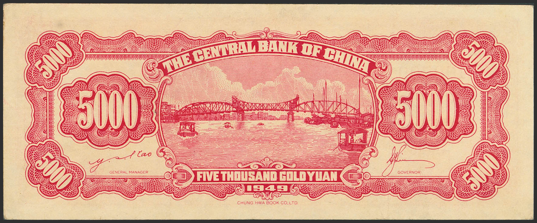 CHINA. 5000 Gold Yuan. 1949. Central Bank of China. (Pick: 414). Less than Uncirculated.