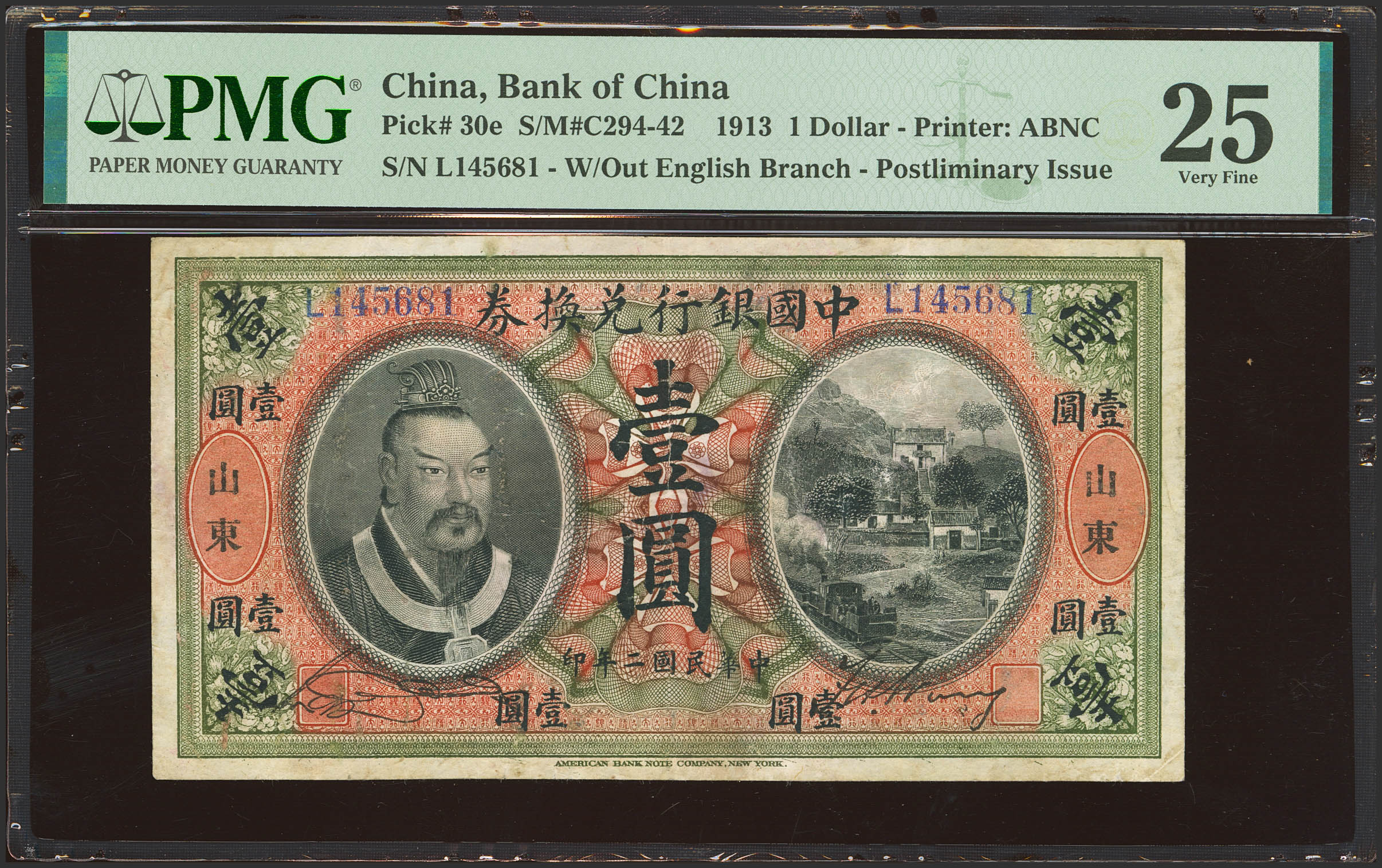 CHINA. 1 Dollar. 1 June 1913. Bank of China. Without place of issue. (Pick: 30e, SM: C294-42). PMG25 (shantung).