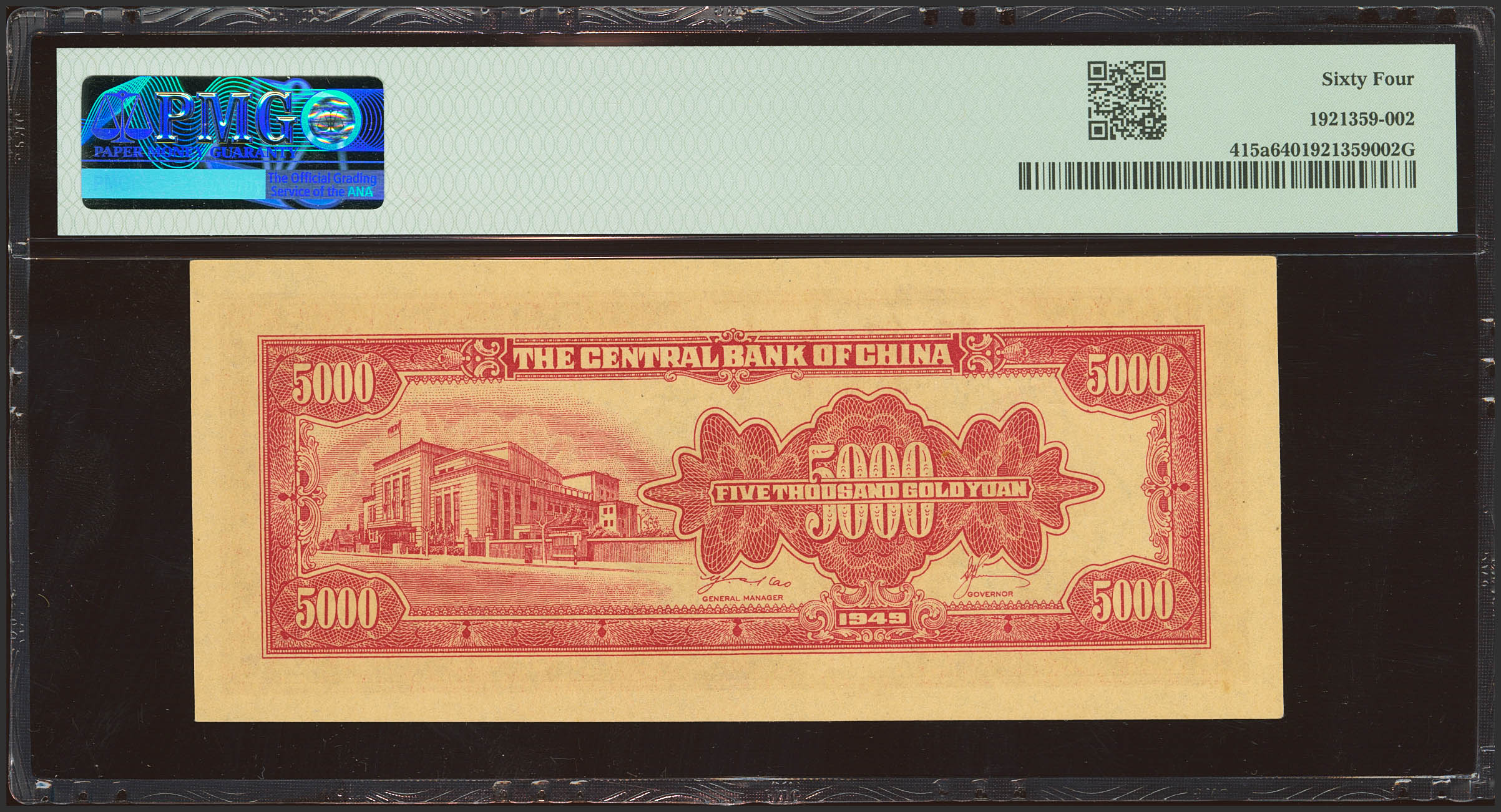 CHINA. 5000 Gold Yuan. 1949. Central Bank of China. 5 characters in the printer's name. (Pick: 415a, SM: C302-56a). PMG64