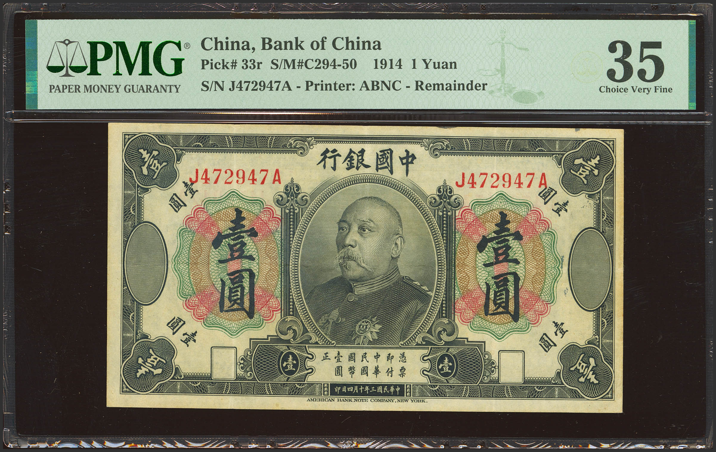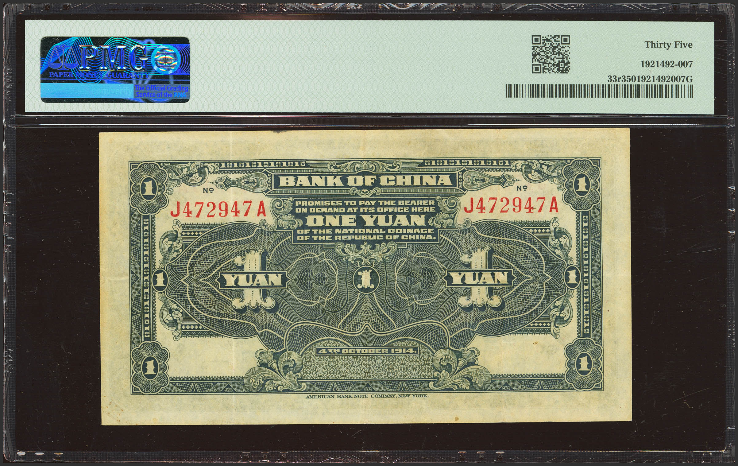CHINA. 1 Yuan. 4 October 1914. Bank of China. (Pick: 33, SM: C294-50). PMG35.