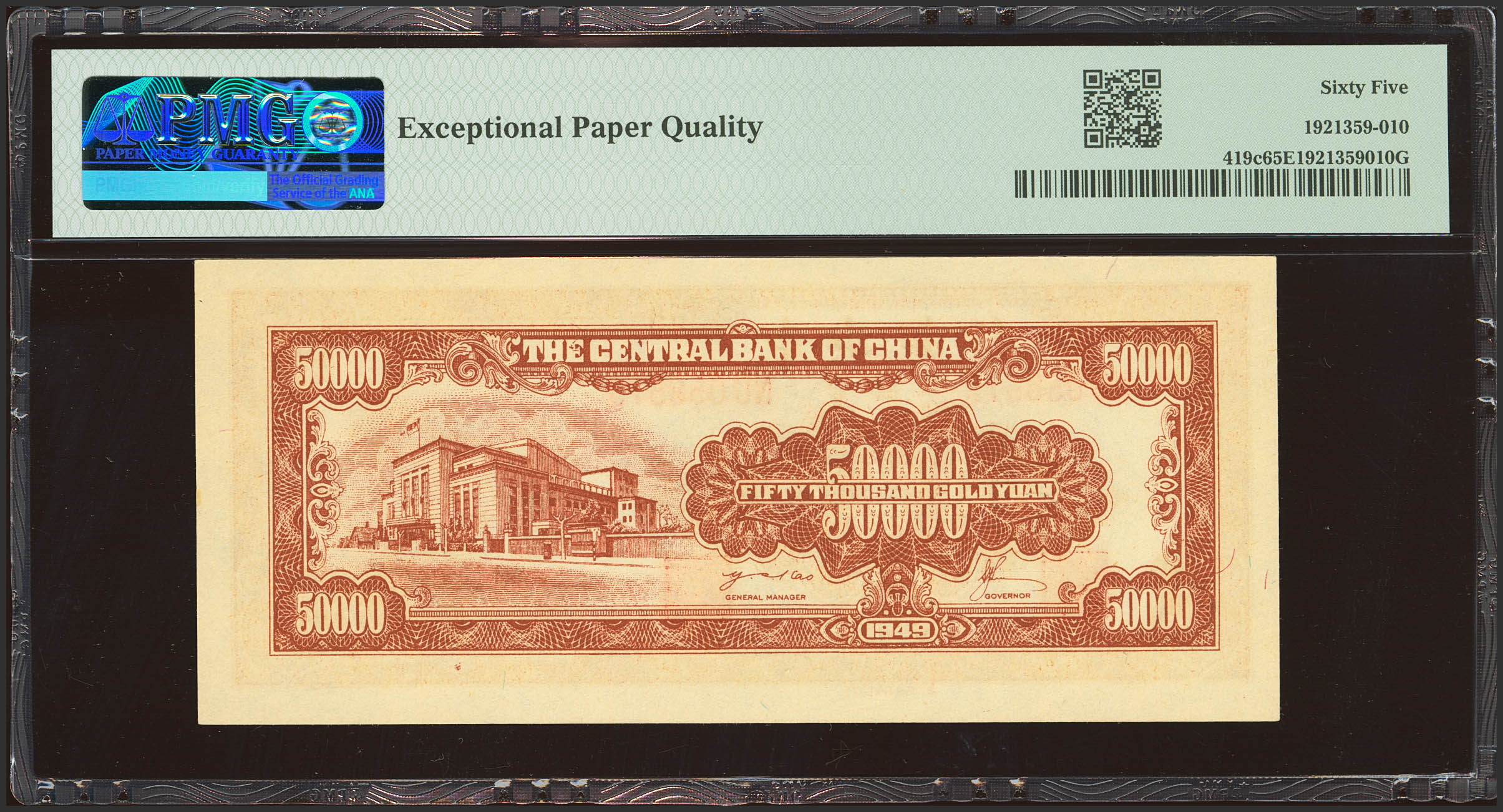 CHINA. 50000 Gold Yuan. 1949. Central Bank of China. (Pick: 419c, SM: C302-63c). PMG65EPQ.