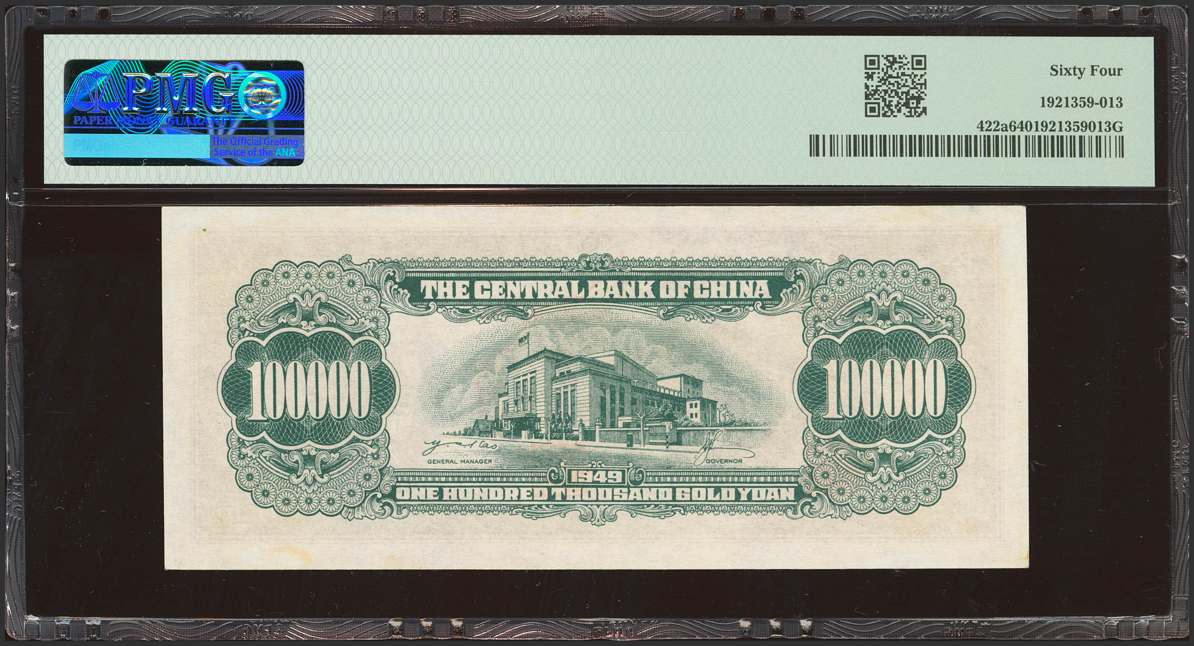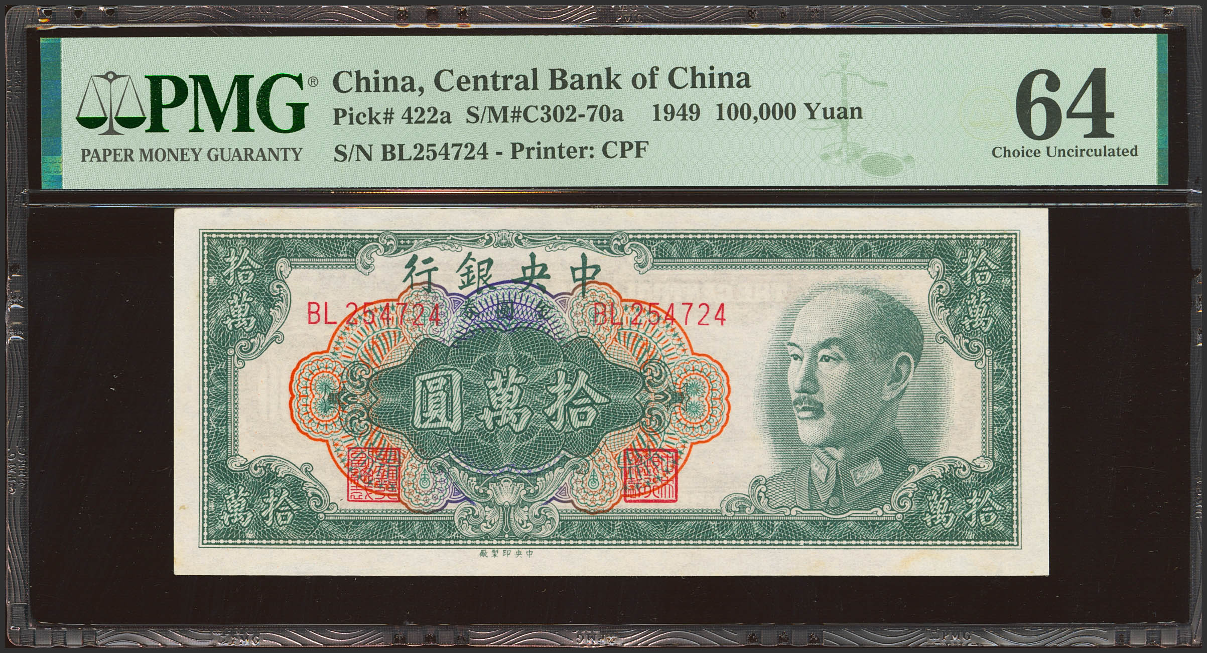 CHINA. 100000 Gold Yuan. 1949. Central Bank of China. (Pick: 422a, SM: C302-70a). PMG64.