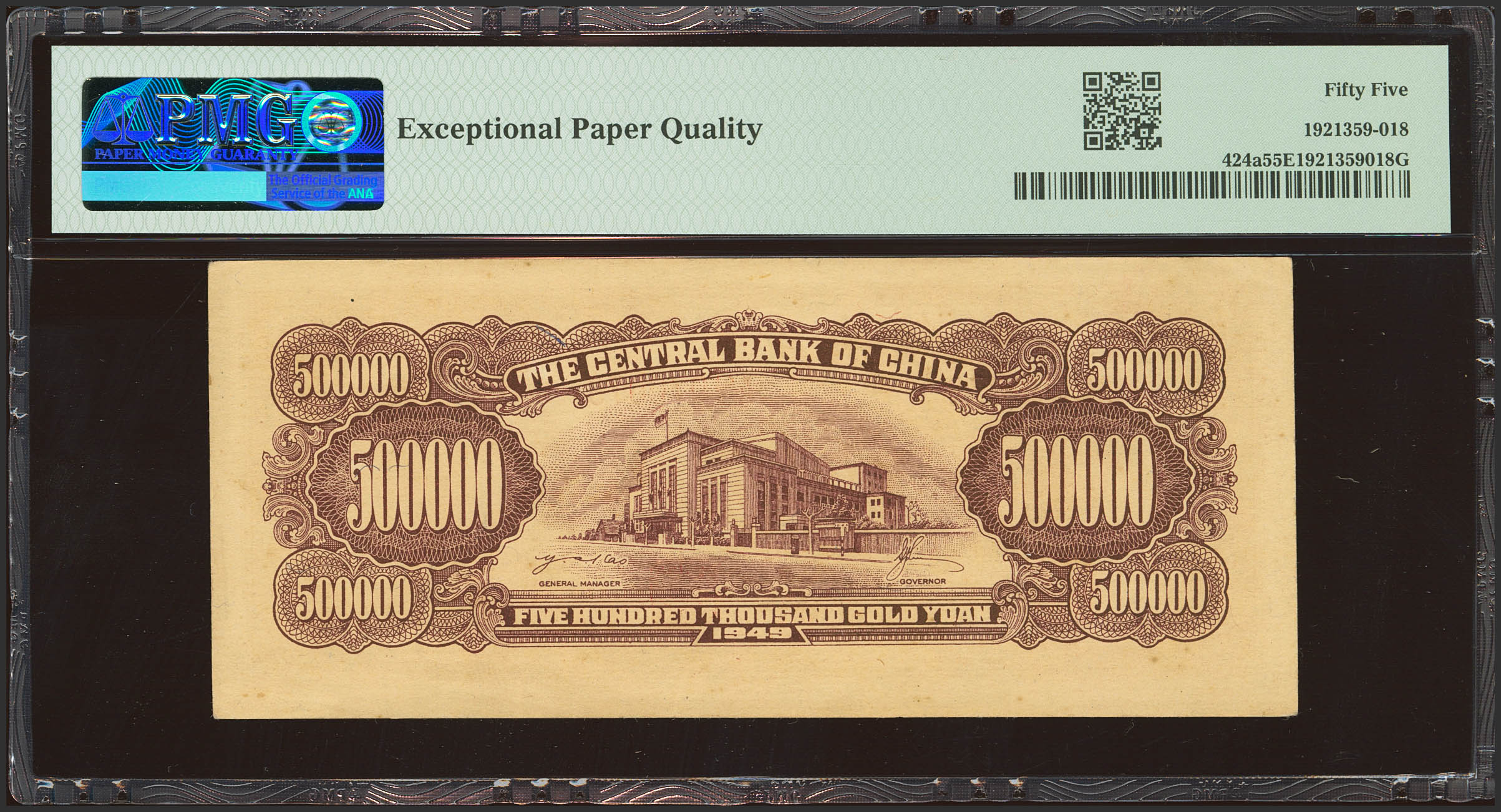 CHINA. 500000 Gold Yuan. 1949. Central Bank of China. (Pick: 424a, SM: C302-70a). PMG55EPQ.