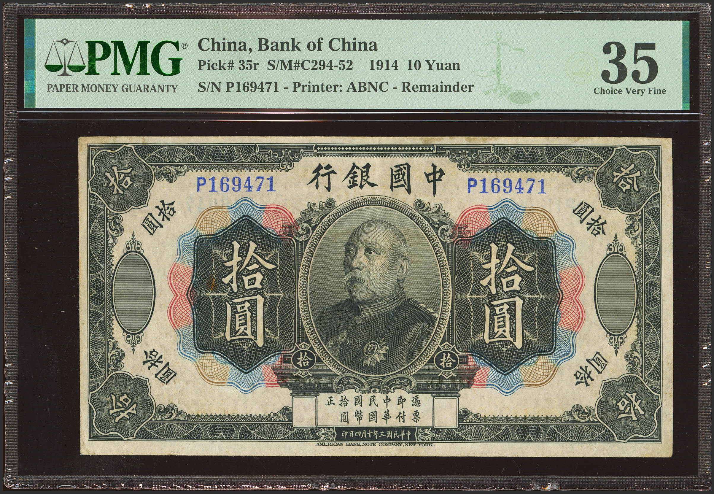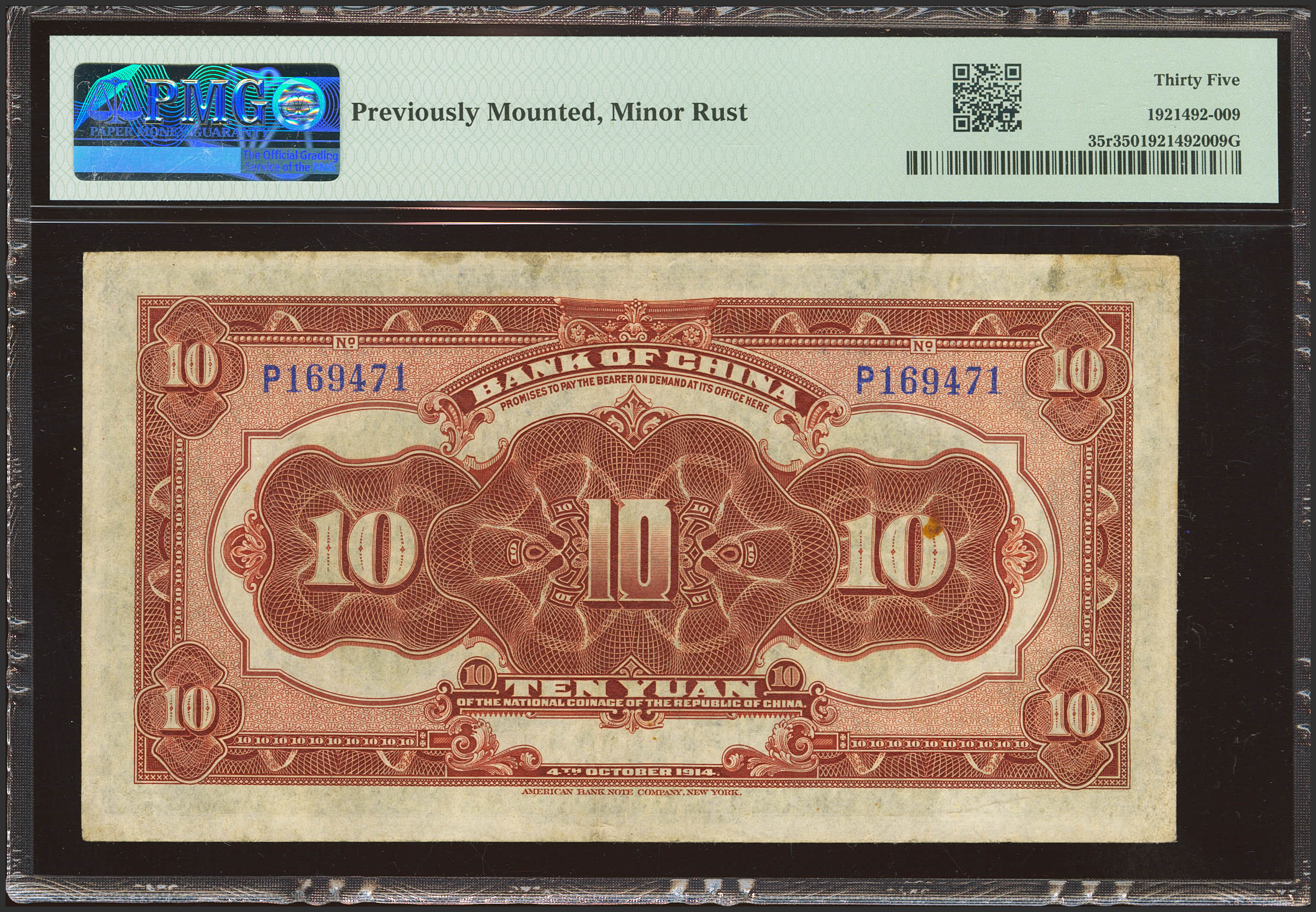 CHINA. 10 Yuan. 4 October 1914. Bank of China. (Pick: 35, SM: C294-52). PMG35 (previously mounted, minor rust).