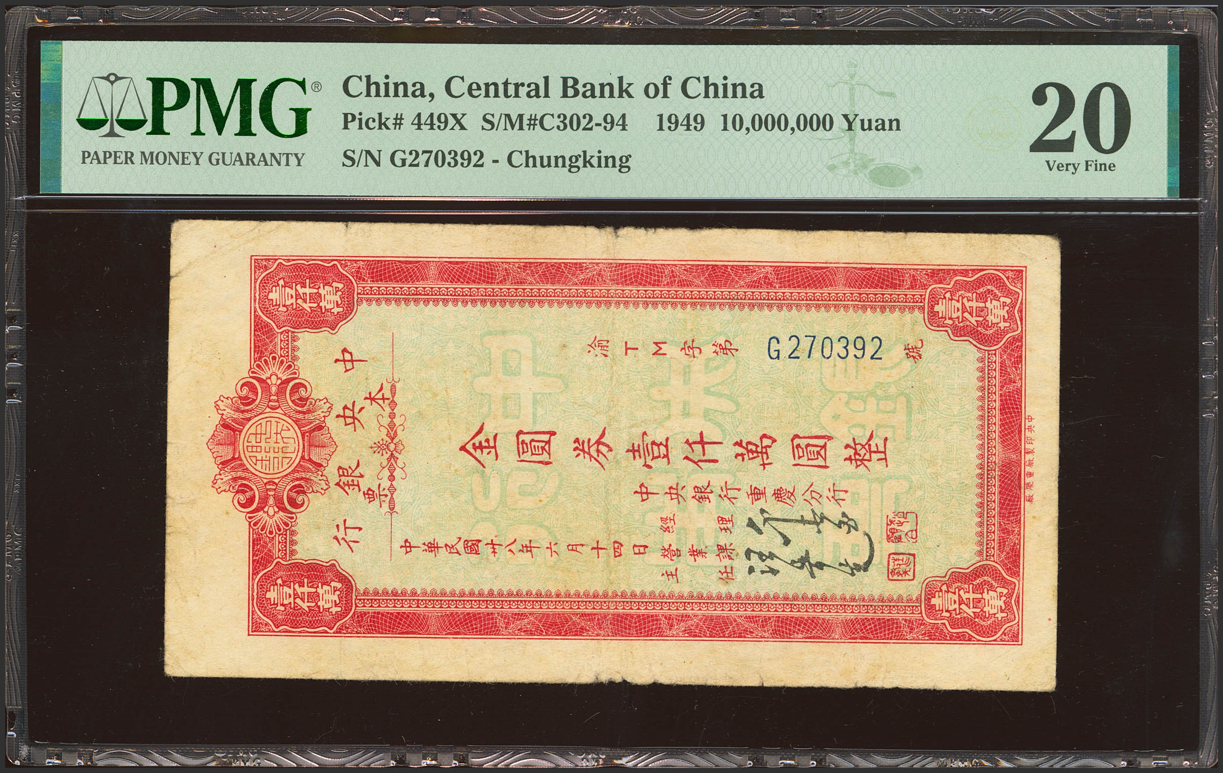 CHINA. 1000000 Gold Yuan. 1949. Central Bank of China. Circulating Cashier’s Check. Chungking. (Pick: 449X, SM: C302-94). PMG20.