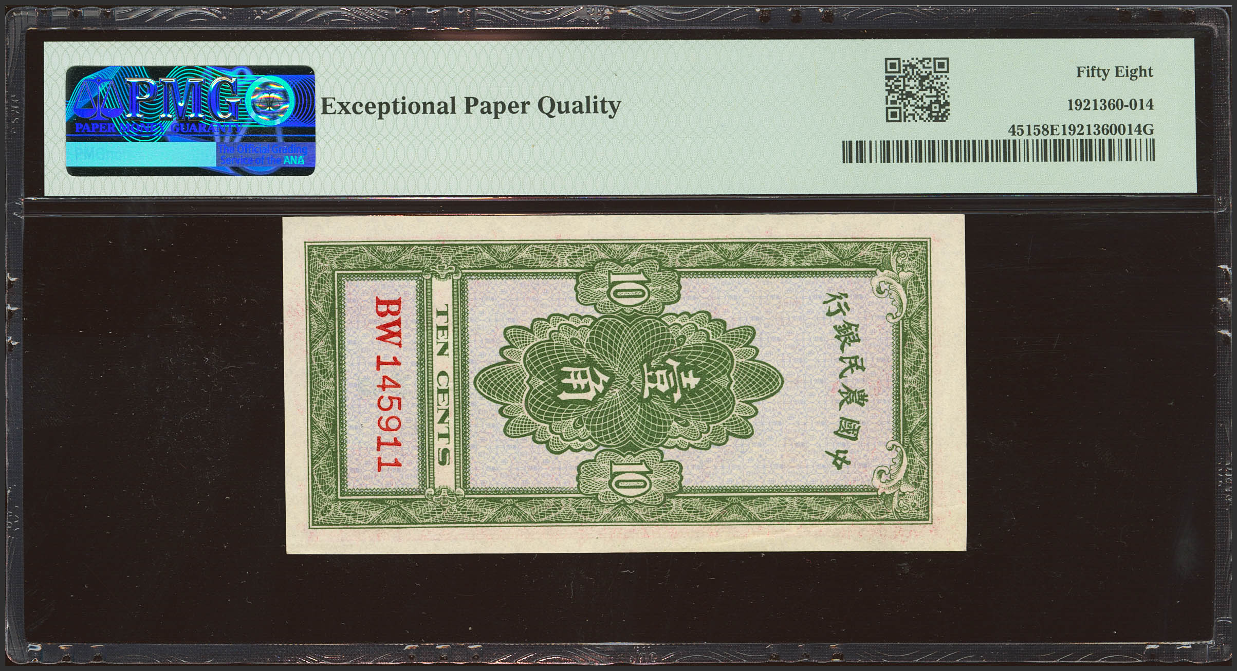 CHINA. 1 Chiao. (1934ca). Farmers Bank of China. (Pick: 451, SM: C290-1). PMG58EPQ.
