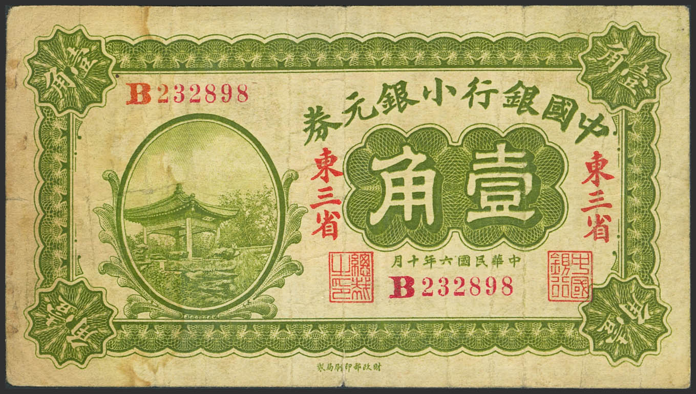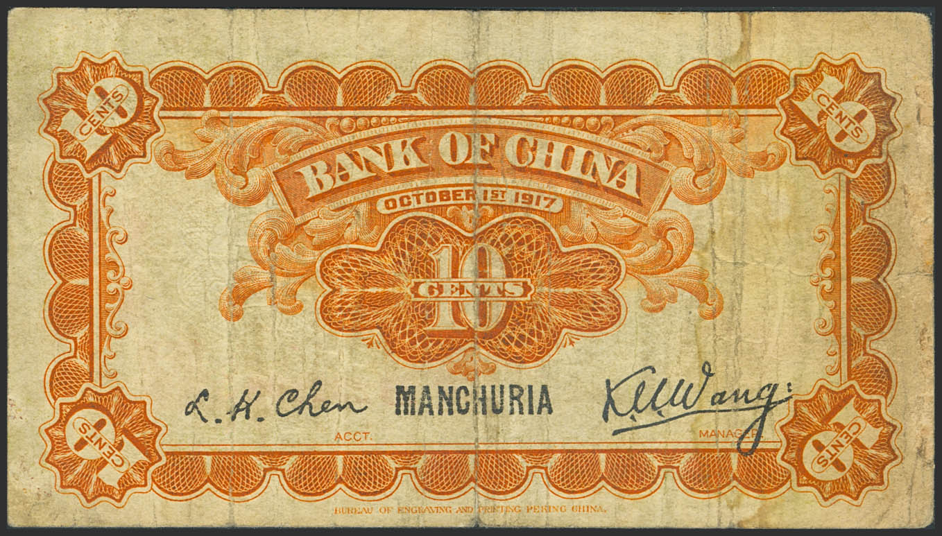 CHINA. 10 Cents. 1 January 1917. Bank of China. Manchuria. (Pick: 42b). More than Fine.