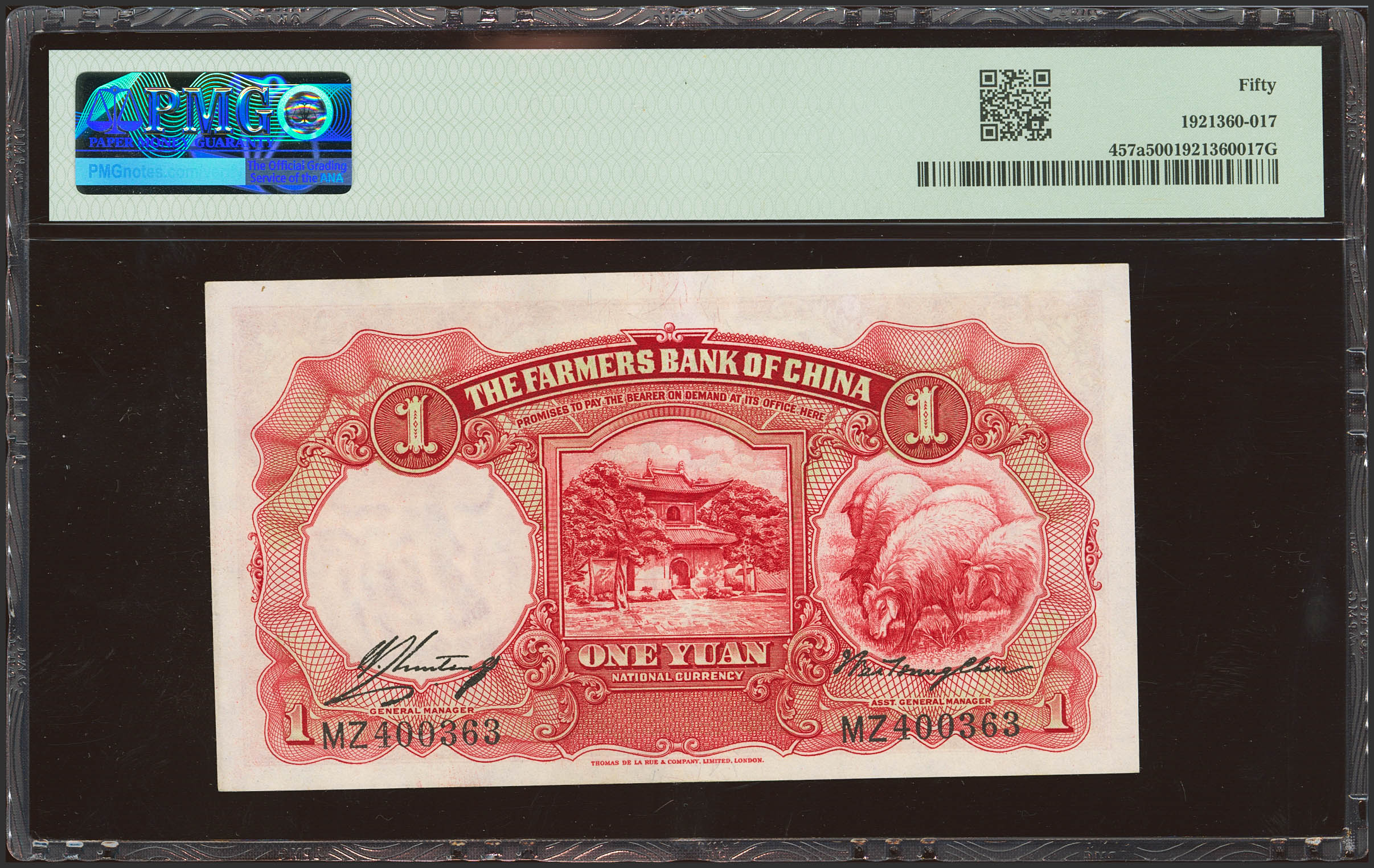 CHINA. 1 Yuan. 1935. Farmers Bank of China. (Pick: 457a, SM: C290-30). PMG50.