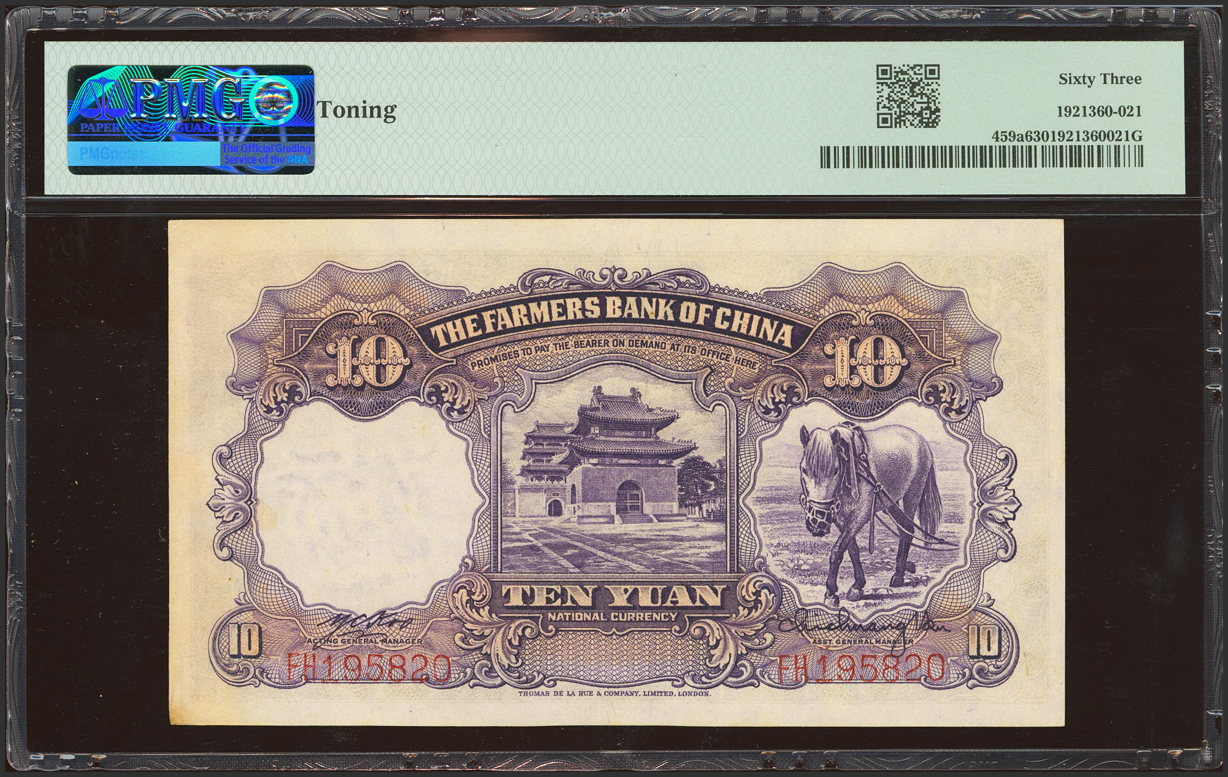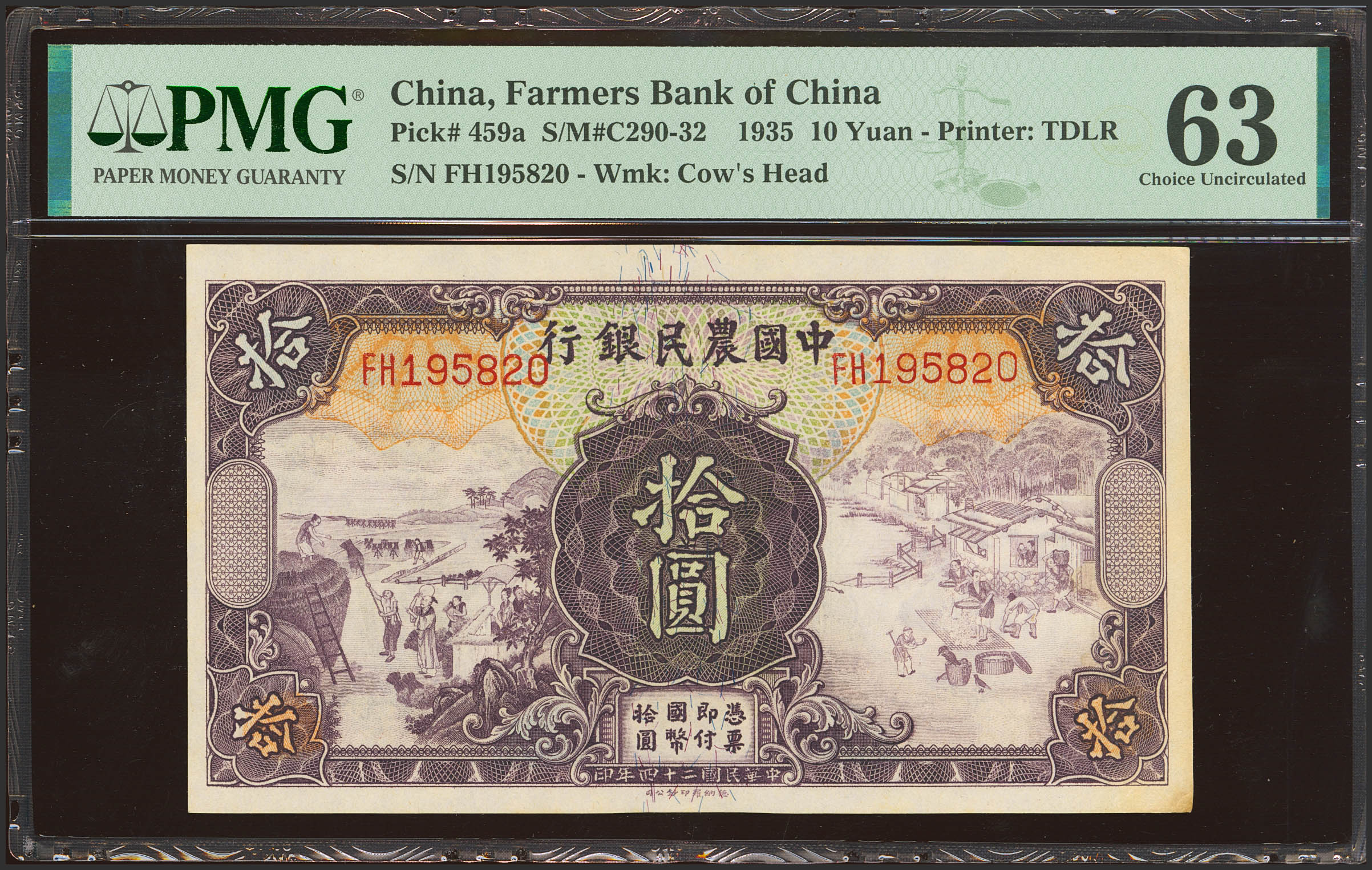 CHINA. 10 Yuan. 1935. Farmers Bank of China. (Pick: 459a, SM: C290-32). PMG63 (toning).