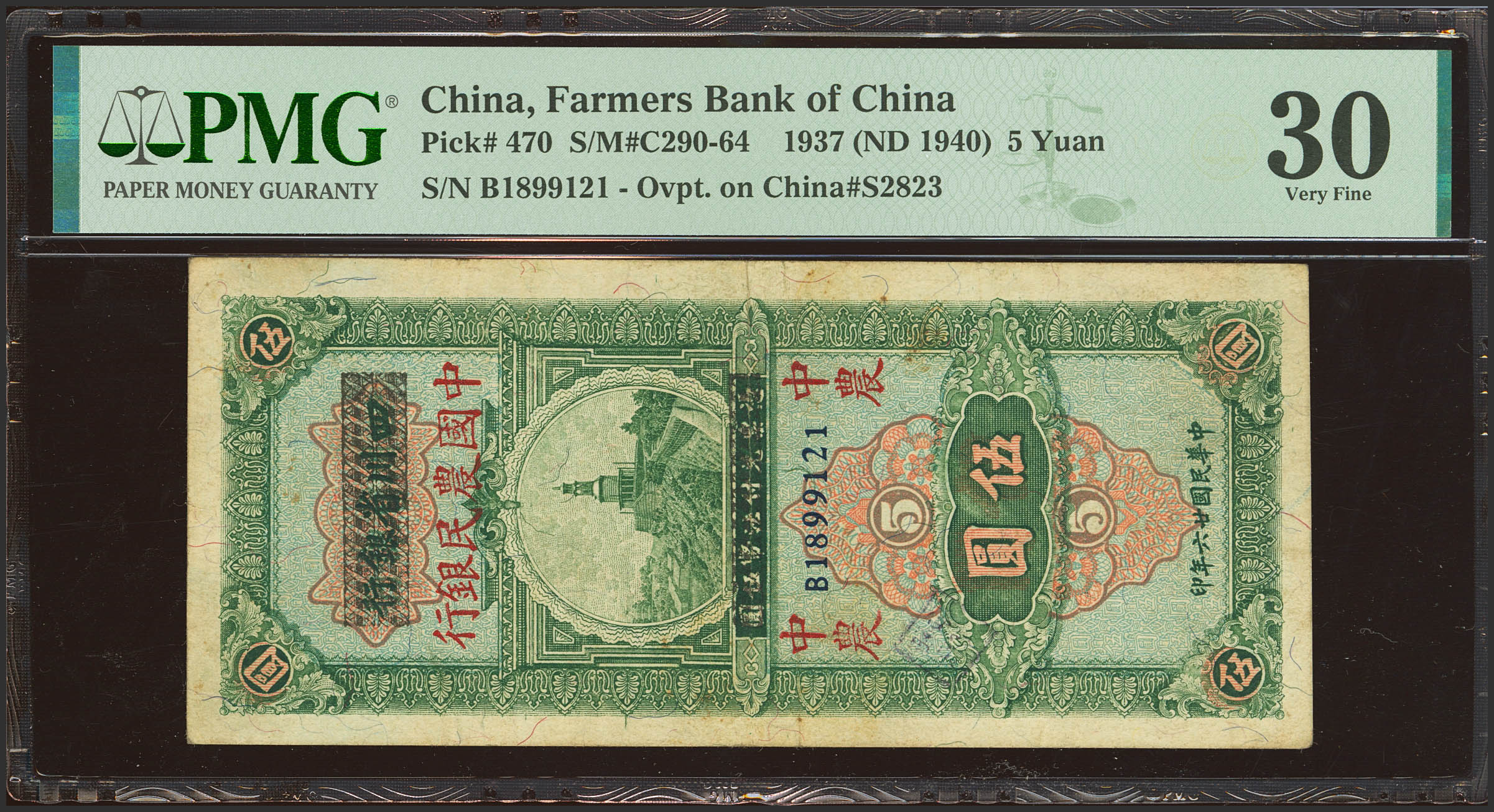 CHINA. 5 Yuan. 1940. Farmers Bank of China. (Pick: 470, SM: C290-64). PMG30.