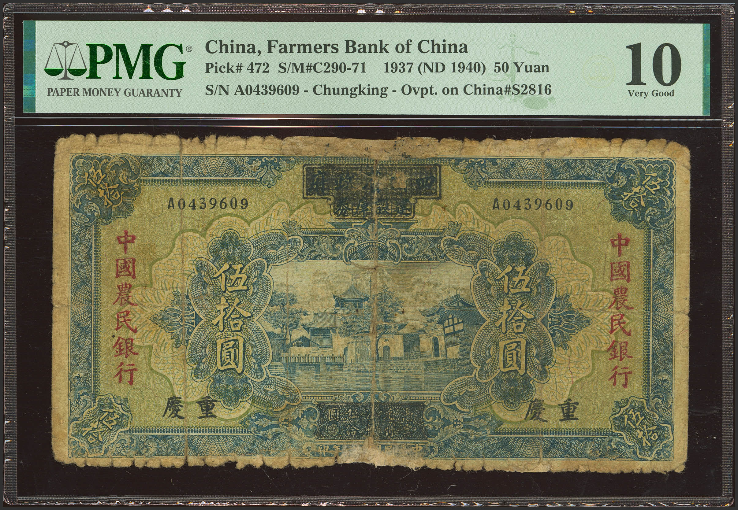 CHINA. 50 Yuan. 1940. Farmers Bank of China. (Pick: 472, SM: C290-71). PMG10 (repaired).