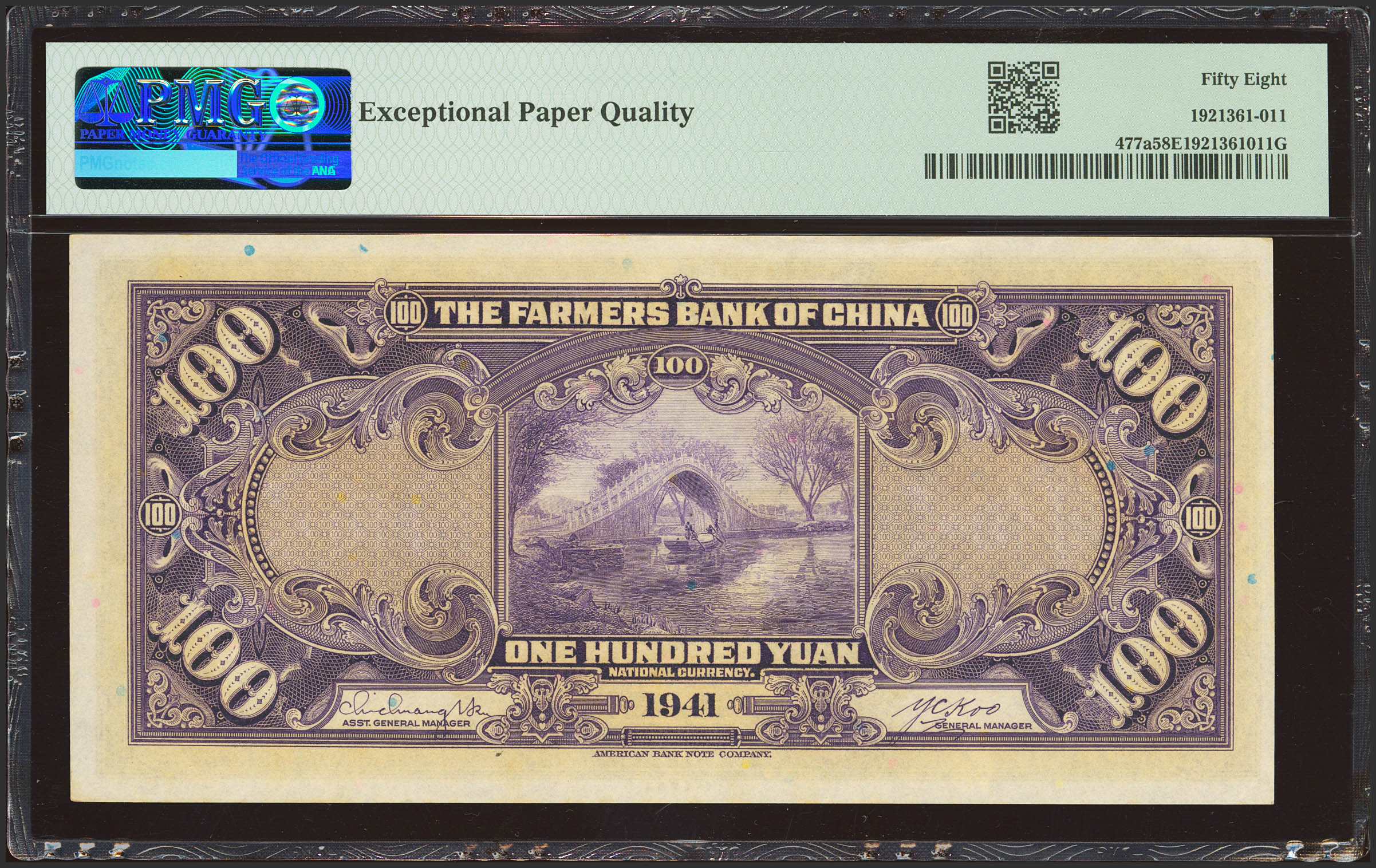 CHINA. 100 Yuan. 1941. Farmers Bank of China. (Pick: 477a, SM: C290-38b). PMG58EPQ.