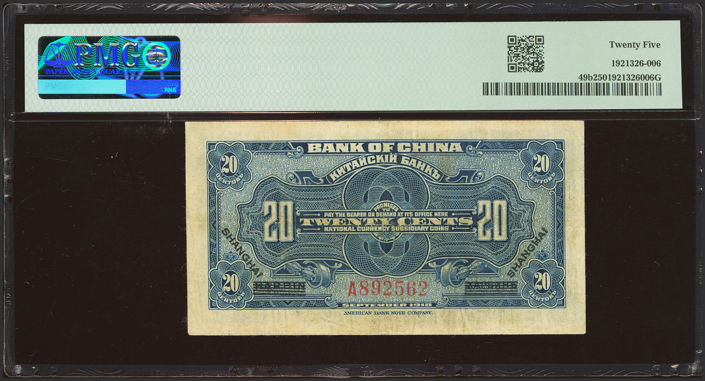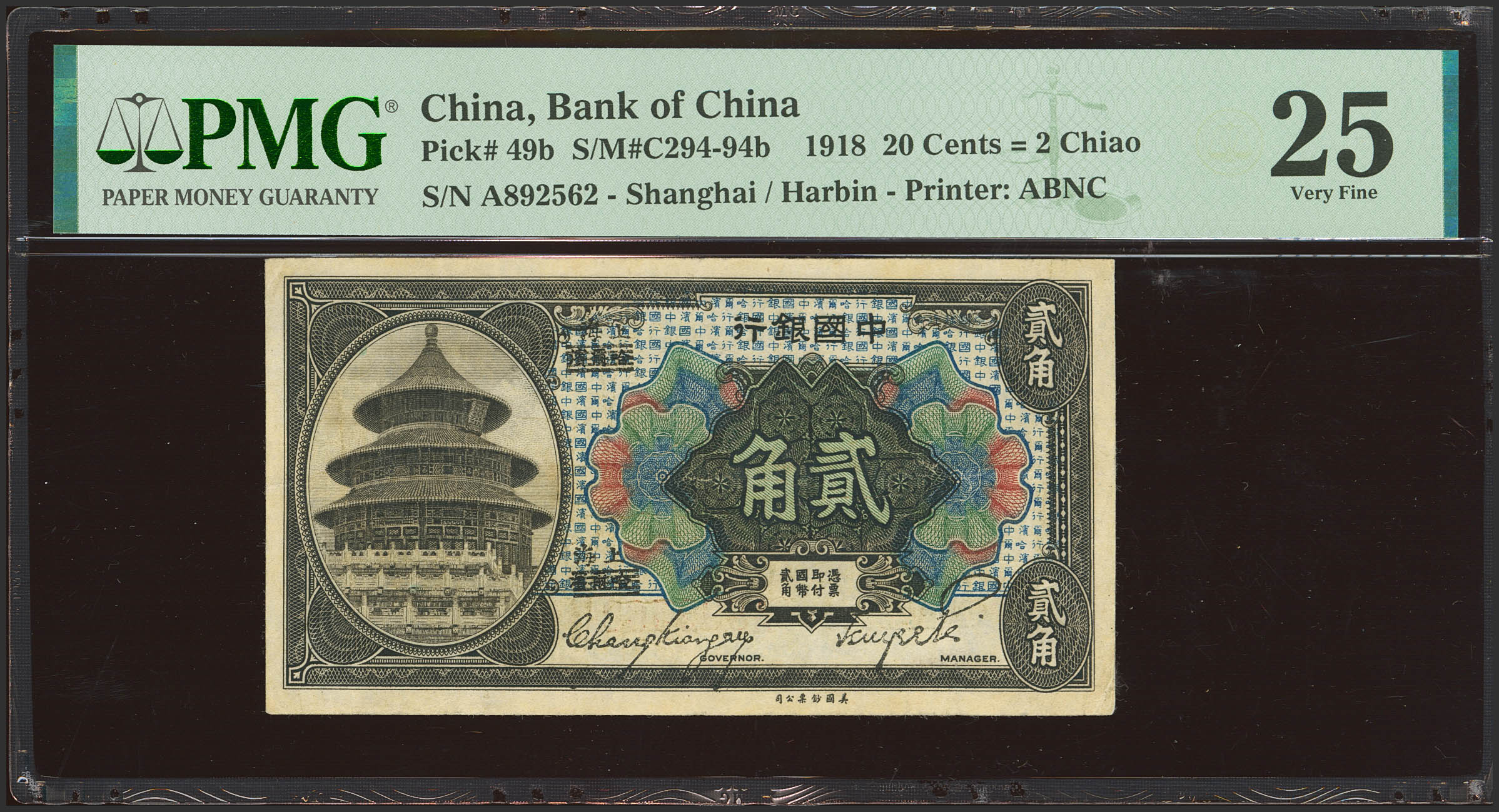 CHINA. 10 Cents. September 1918. Bank of China. Shanghai. (Pick: 48a, SM: C294-94b). PMG25.