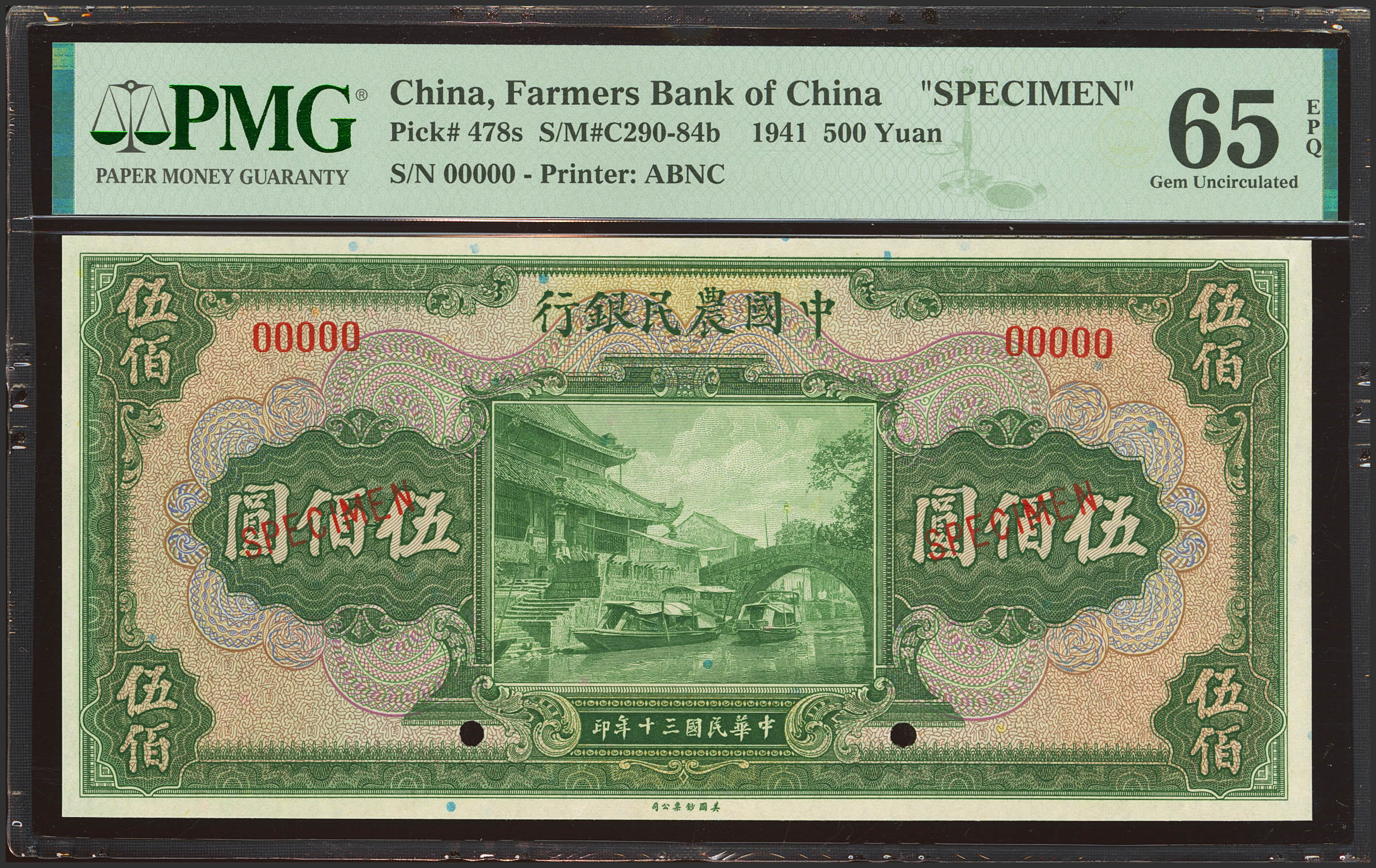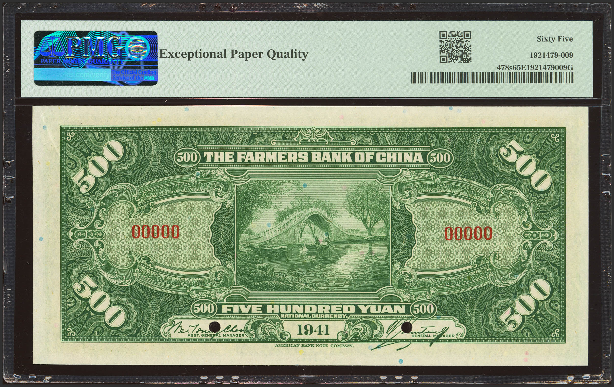 CHINA. 500 Yuan. 1941. Farmers Bank of China. Specimen. (Pick: 478s, SM: C290-84b). PMG65EPQ.