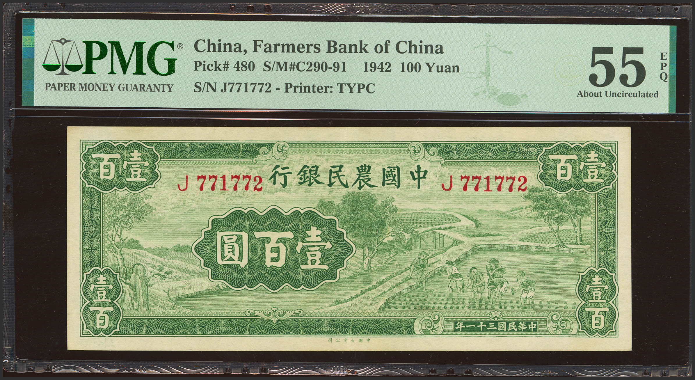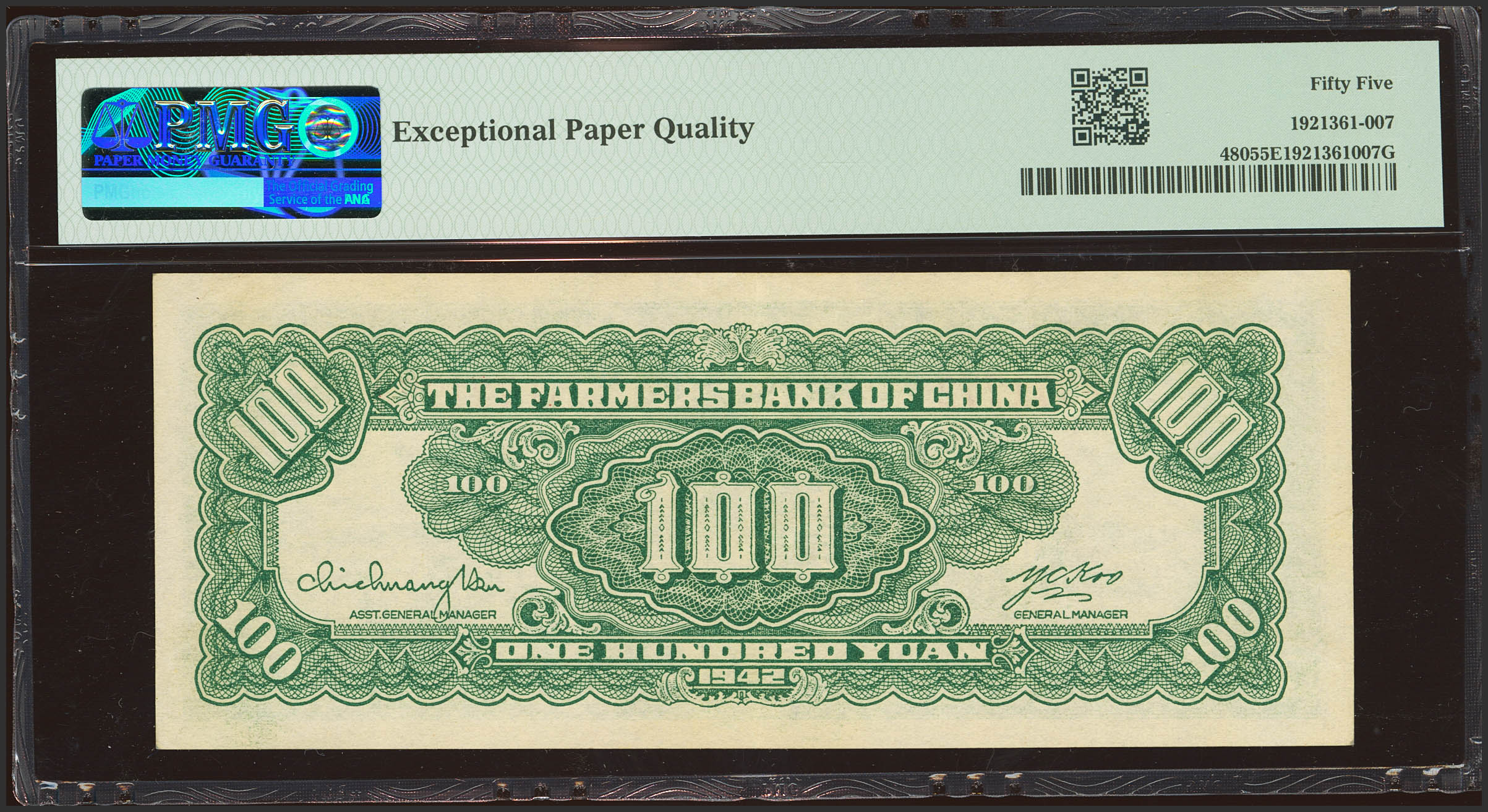 CHINA. 100 Yuan. 1942. Farmers Bank of China. (Pick: 480, SM: C290-91). PMG55EPQ.
