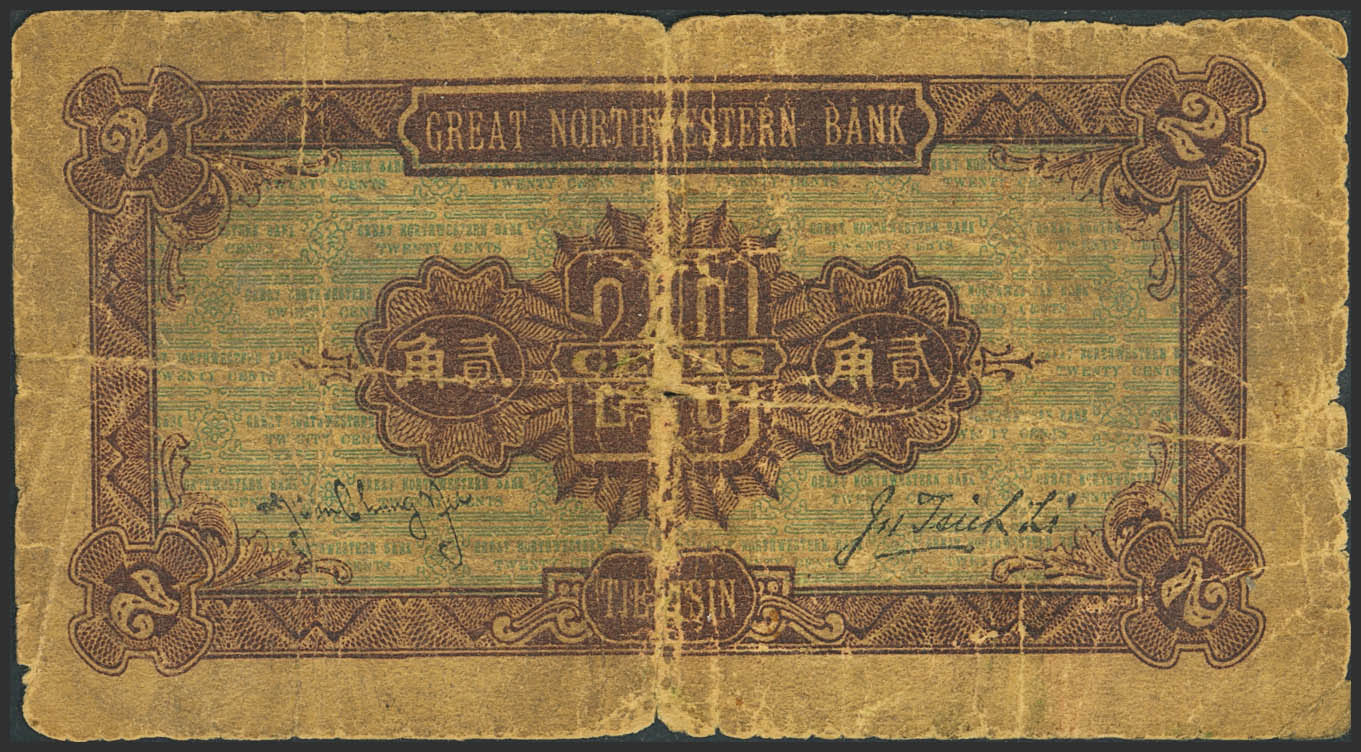 CHINA. 20 Cents. 1924. Great Northwestern Bank. Tientsin. (Pick: 486). Good.