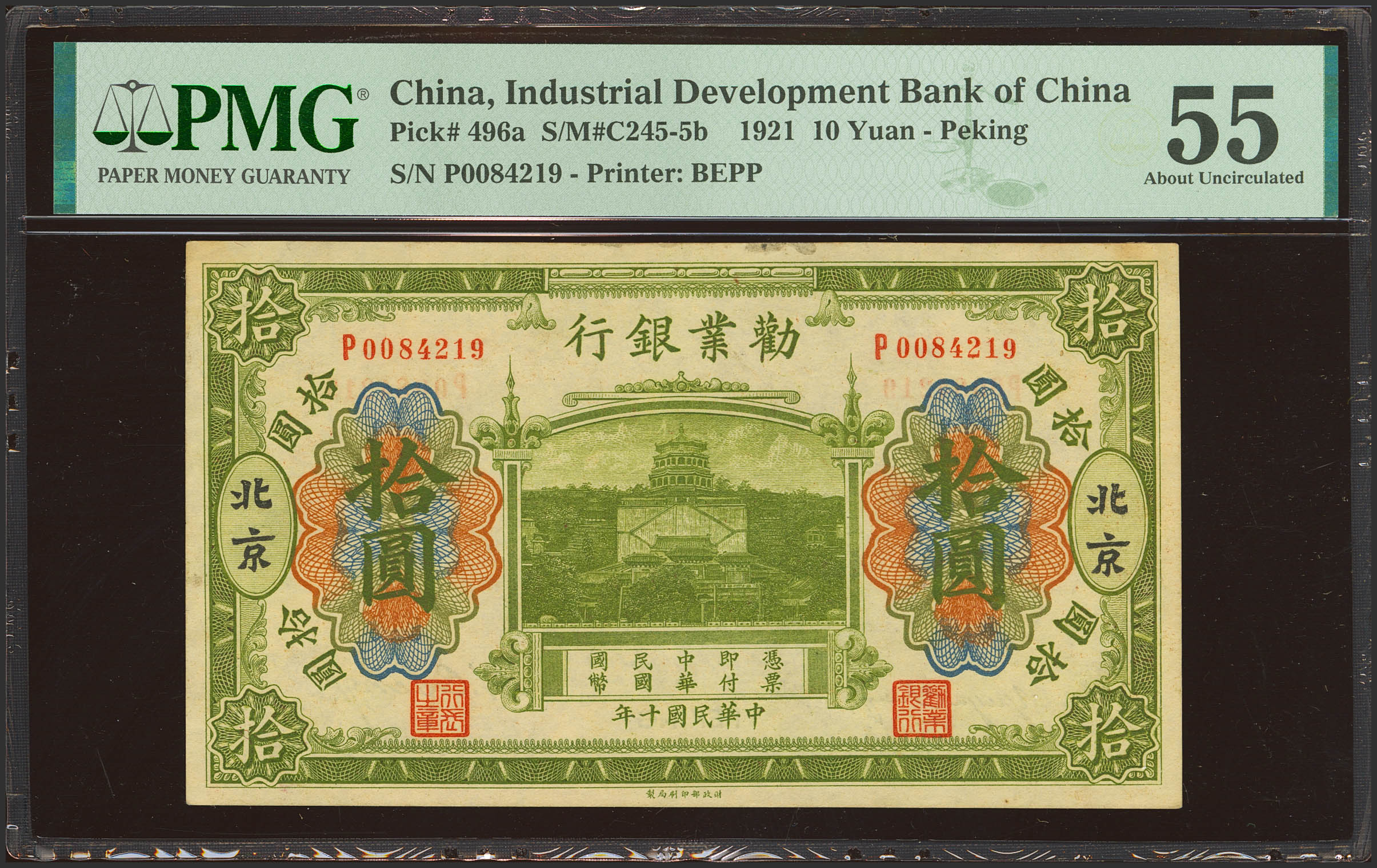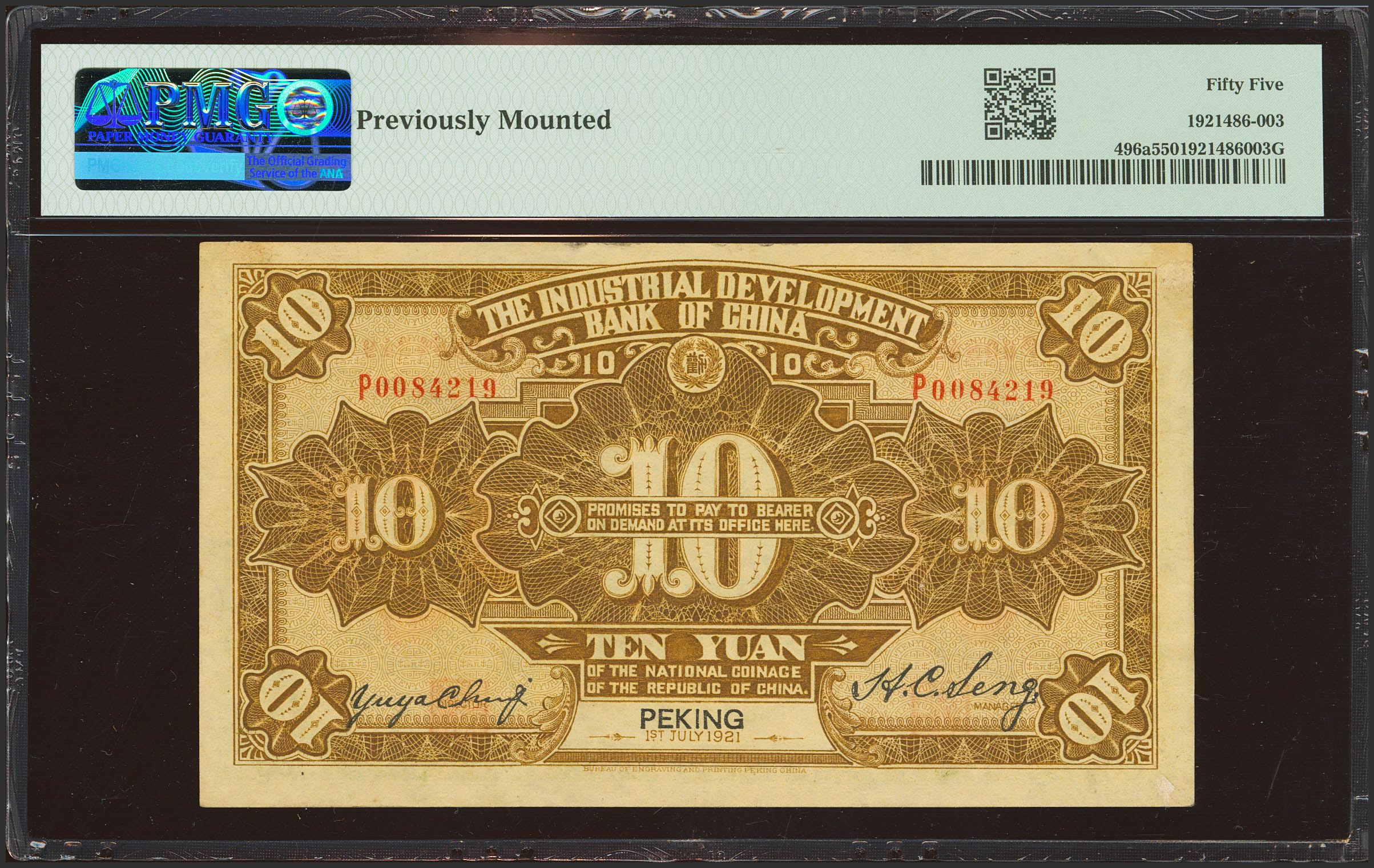 CHINA. 10 Yuan. 1 July 1921. Industrial Development Bank of China. Peking. (Pick: 496a, SM: C245-5b). PMG55 (previously mounted).