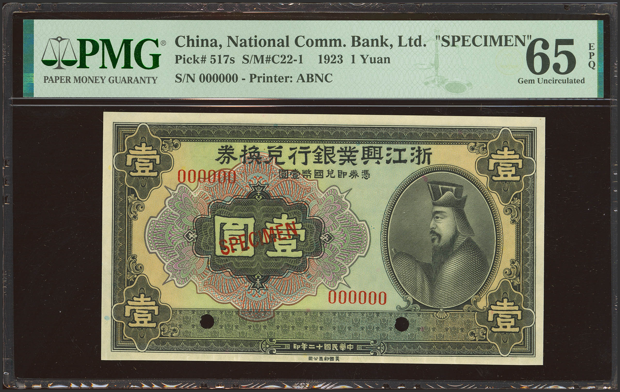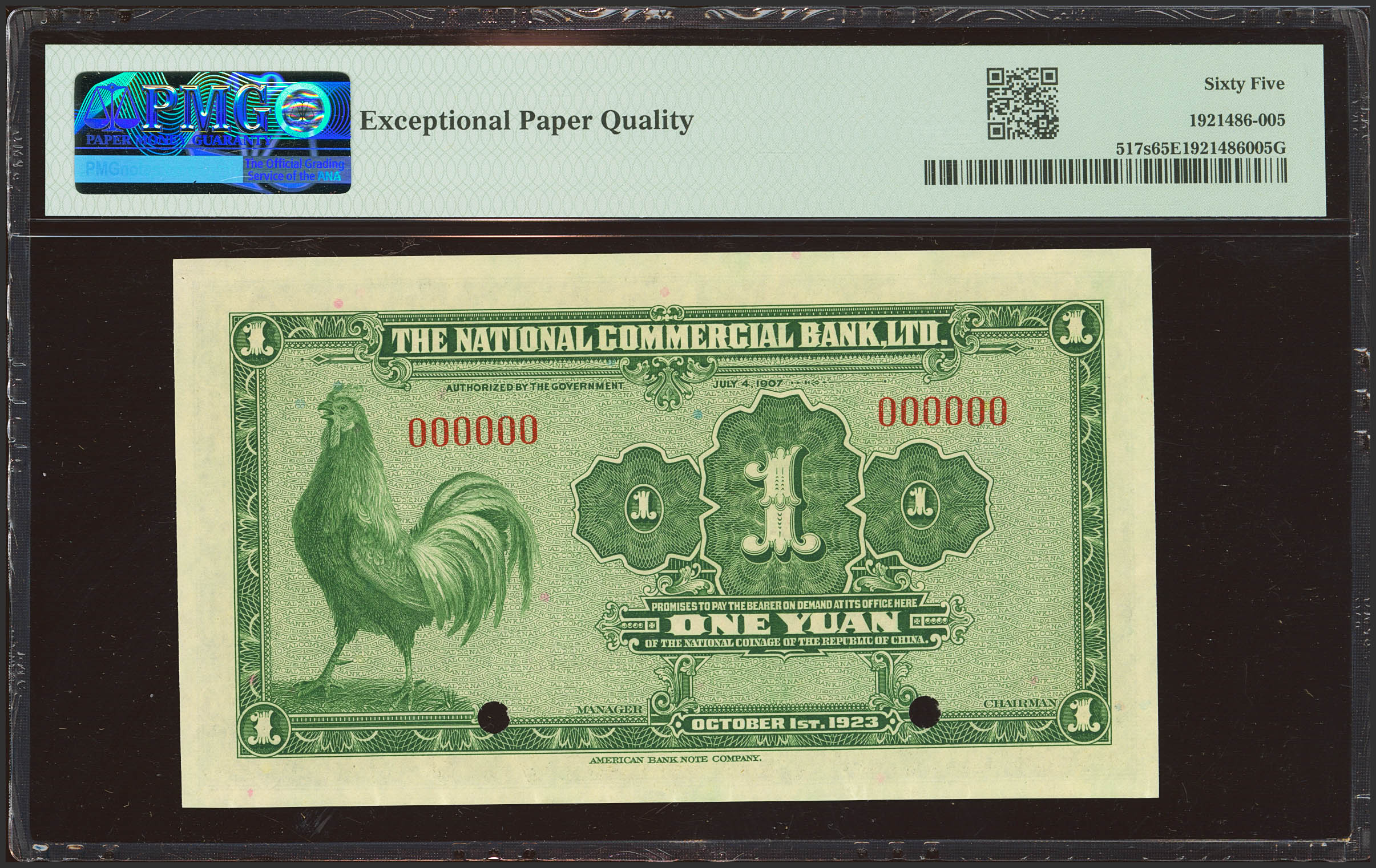 CHINA. 1 Yuan. 1 October 1923. National Commercial Bank. Specimen. (Pick: 517s, SM: C22-1). PMG65EPQ.