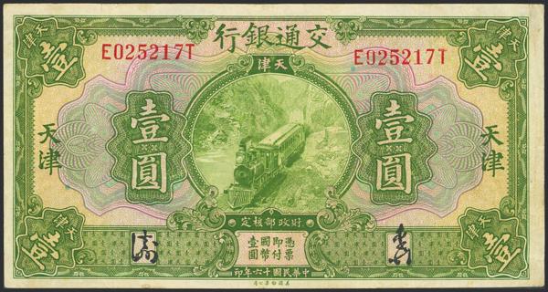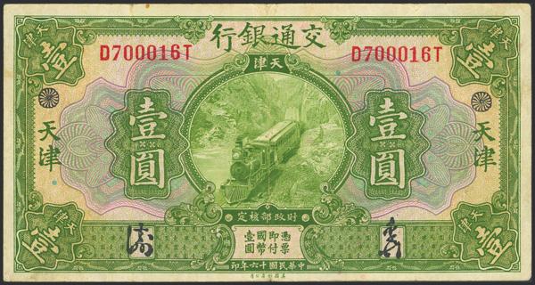 CHINA. 1 Yuan. 1 November 1927. Tientsin. Bank of Communications. (Pick: 145C). Very Fine.