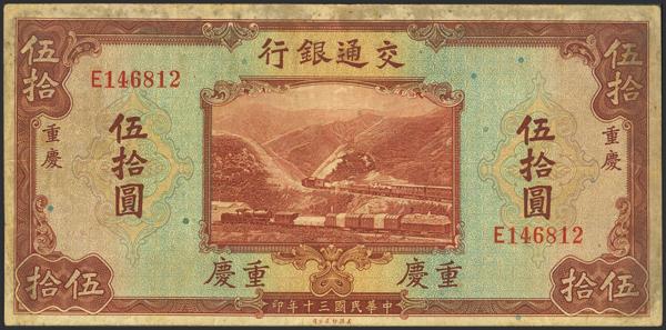 CHINA. 50 Yuan. 1941. Bank of Communication. Chungking. (Pick: 161a). More than Fine.