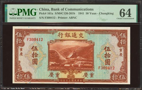 CHINA. 50 Yuan. 1941. Bank of Communication. Chungking. (Pick: 161a, SM: C126-261b). PMG64.
