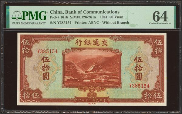 CHINA. 50 Yuan. 1941. Bank of Communication. (Pick: 161b, SM: C126-261a). PMG64.