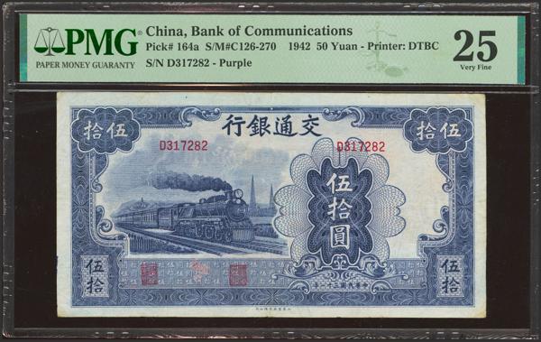 CHINA. 50 Yuan. 1942. Bank of Communication. (Pick: 164a, SM: C126-270). PMG25.