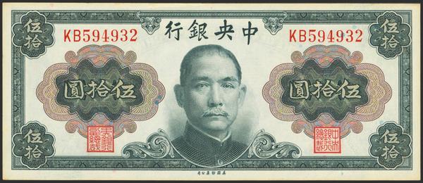 CHINA. 50 Yuan. 1948. Central Bank of China. (Pick: 402). More than Extremely Fine.