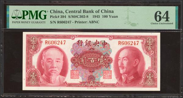 CHINA. 100 Yuan. 1945. Central Bank of China. (Pick: 394, SM: C302-8). PMG64.