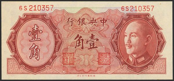 CHINA. 10 Cents. 1946. Central Bank of China. (Pick: 395). Almost Uncirculated.