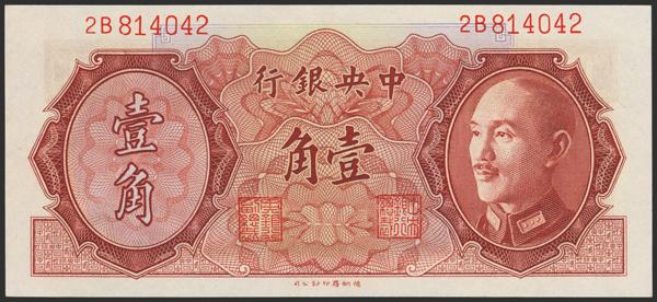 CHINA. 10 Cents. 1946. Central Bank of China. (Pick: 395). Less than Uncirculated.