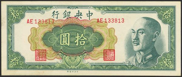 CHINA. 10 Yuan. 1948. Central Bank of China. (Pick: 399). Almost Uncirculated.
