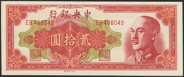 CHINA. 20 Yuan. 1948. Central Bank of China. (Pick: 401). Almost Uncirculated.