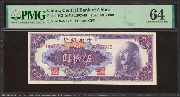 CHINA. 50 Yuan. 1948. Central Bank of China. (Pick: 403, SM: C302-40). PMG64.