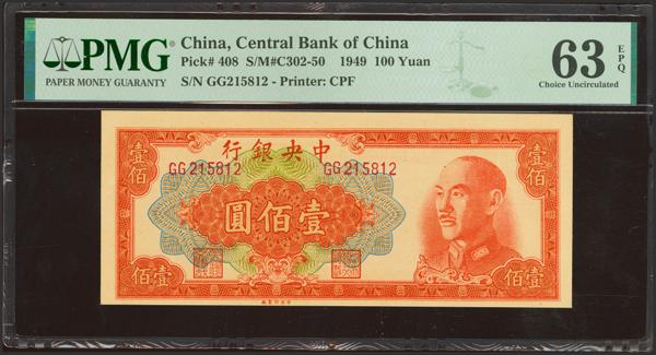 CHINA. 100 Yuan. 1949. Central Bank of China. (Pick: 408, SM: C302-50). PMG63EPQ.