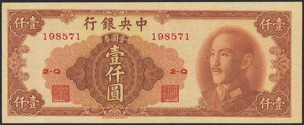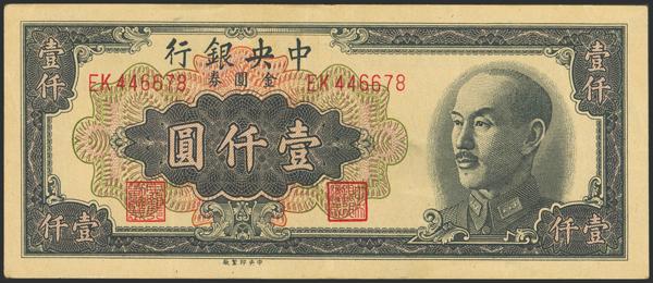 CHINA. 1000 Gold Yuan. 1949. Central Bank of China. (Pick: 411). Almost Uncirculated.