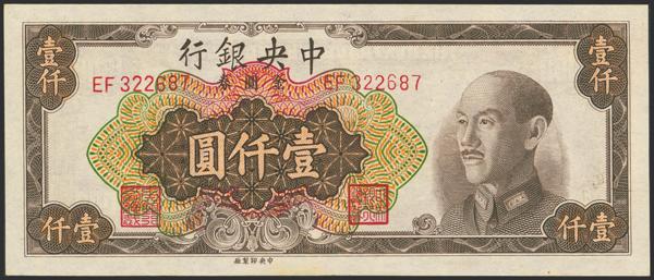 CHINA. 1000 Gold Yuan. 1949. Central Bank of China. (Pick: 412a). Extremely Fine.