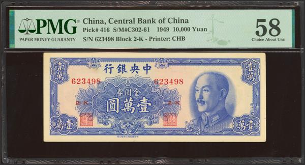 CHINA. 10000 Gold Yuan. 1949. Central Bank of China. (Pick: 416, SM: C302-61). PMG58.