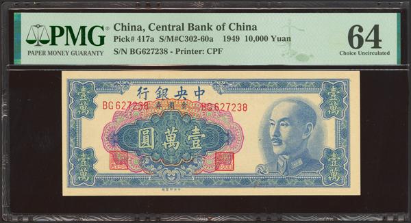 CHINA. 10000 Gold Yuan. 1949. Central Bank of China. (Pick: 417a, SM: C302-60a). PMG64.